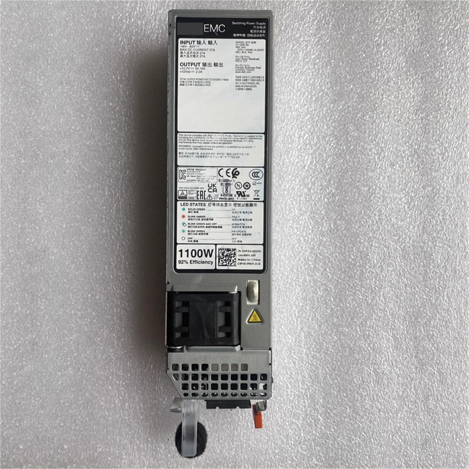 AdaptersPart NumbersWPJC6, K3KJCModel NumberD1100D-S0Max Power1100WInput-48- -60V, 27A==========Hign-concerned Chemical : NoneFans : 1PFC Type : ActiveApplication : ServerModel Number : D1100D-S0Input Voltage : -48- -60VModular : Non-ModularMax Output Power : 1100W