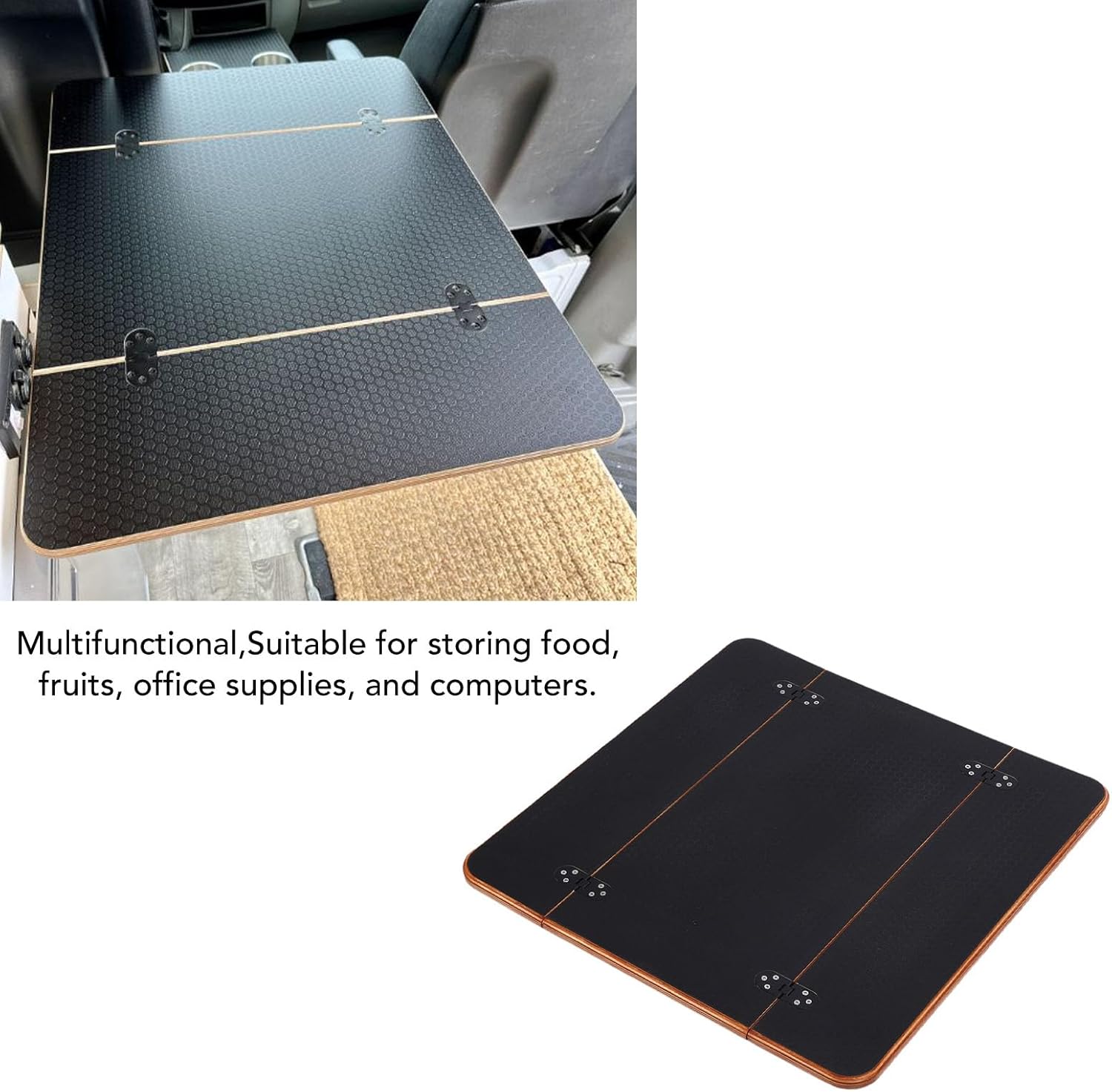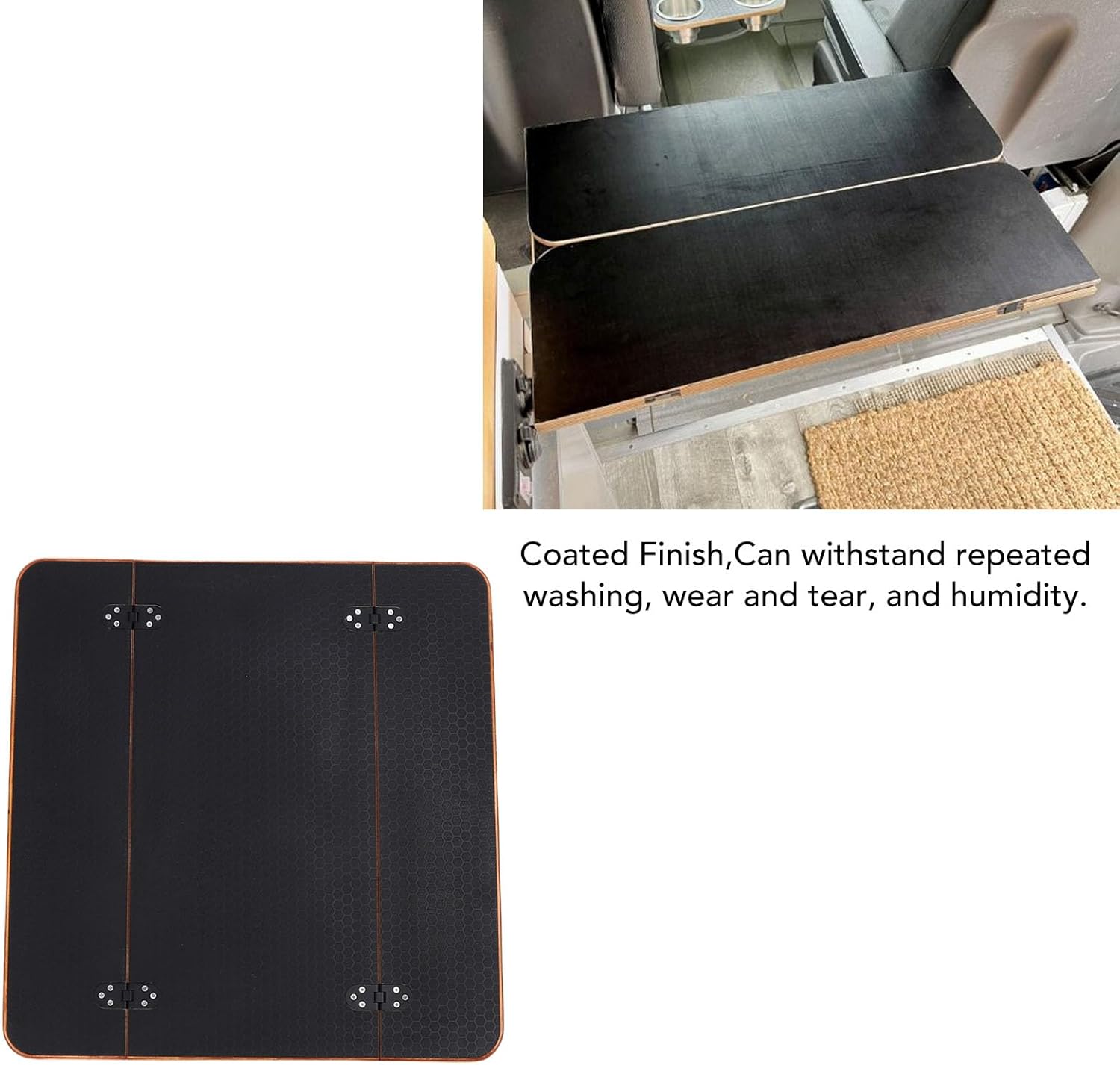 1. Generous Size And Foldable Design: Measuring this spacious table top offers ample room for placing food, fruits, office supplies, and laptops. Its folding design allows for easy storage and transport. 2. Rugged Coating For Longevity: Crafted from steamed solid wood, the table top coated surface is resist to repeated washing, wear, and humidity. This ensures it retains its elegant appearance over time, as it won't fade or peel. 3. Stylish And Elegant Design: The RV table top features a modern, sophisticated look with neat seams that elevate the dining experience. It adds a touch of luxury to your dining or work space, seamlessly blending functionality with aesthetics. 4. Versatile Use: Specifically designed for dining and work purposes, this table top fits well in RVs, commercial vehicles, boats, and yachts. Its multifaceted nature makes it suitable for any space that requires both style and practicality, accommodating diverse needs. 5. Safety Features: The table top is designed with rounded corners to prevent collisions and injuries, making it safe for families and children. This thoughtful design ensures that you can enjoy your meals or work with confidence. Specification: Item Type: RV Table Top Size: Approx. 595 x 583mm / 23.43 x 22.95in Thickness: Approx. 15mm / 0.59in Material: Solid Wood Surface: Flat Finish Installation: Screw Hole Fixing(Self Tapping, Not Included) Use: Suitable for RV, Camping Trailer, Motorhome, Yacht, Boat Deck, Commercial Vehicle Package List: 1 x RV Table Top