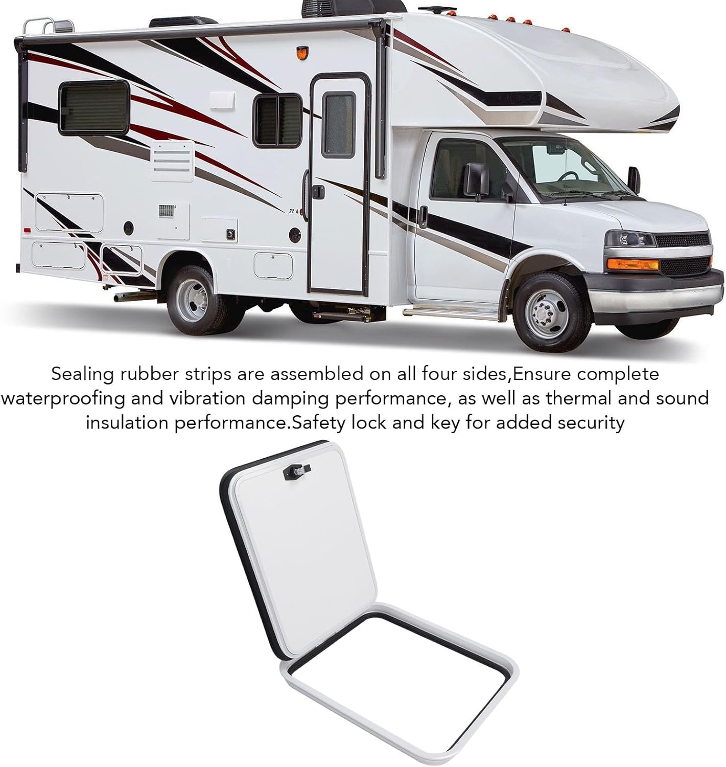 Specification: Item Type: RV Compartment Door Size: Approx. 605x525mm / 23.82x20.67in Installation Hole Size: Approx. 580x500mm / 22.83x19.69in Suitable Thickness: Approx. 25-40mm / 0.98 - 1.57in Main Material: Aluminum Alloy + Sun Proof ASA Panel Application: Heavy duty storage compartment door with safety lock, large opening area for accommodating large items, no discoloration in the sun, suitable for horizontal or vertical installation, high grade substitute for old and damaged storage doors, suitable for RV, campervan, motor home, etc. Package List: 1 x Compartment Door 8 x Buckles 8 x Screws 2 x Keys Notice: 1. It is highly recommended to have professional installation. Please seek assistance from professional engineers to ensure the best shopping experience. 2. Please make sure to confirm the correct size before making a purchase.