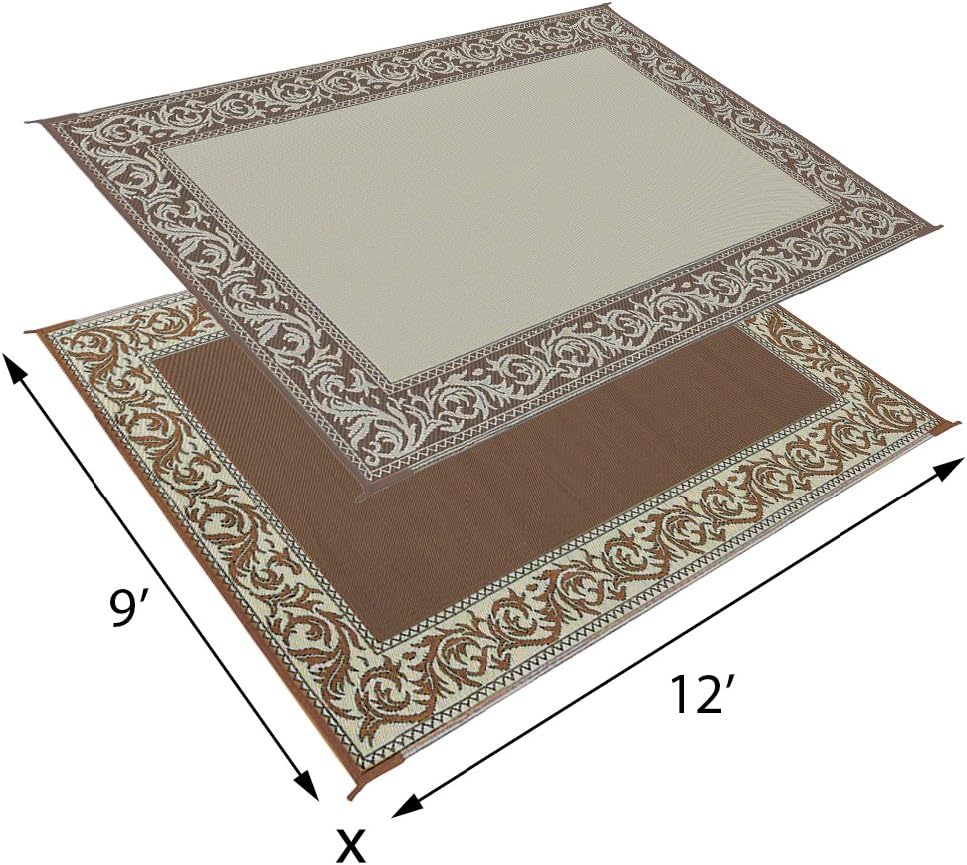 Item Type Name Stylish Camping RA7 9-Feet x 12-Feet Classical RV Reversible Patio Mat, Brown/Beige