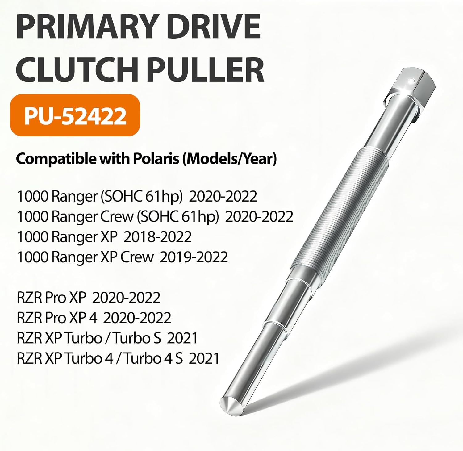 • 【PU-52422 Clutch Puller Tool】: Compatible with Polaris 1000 Ranger (SOHC 61hp) 20-22; 1000 Ranger Crew (SOHC 61hp) 20-22; 1000 Ranger XP 2018-22; 1000 Ranger XP Crew 19-22; RZR Pro XP 20-22; RZR Pro XP 4 20-22; RZR XP Turbo / Turbo S 21; RZR XP Turbo 4 / Turbo 4 S 21. Replaces Part # PU-52422.
