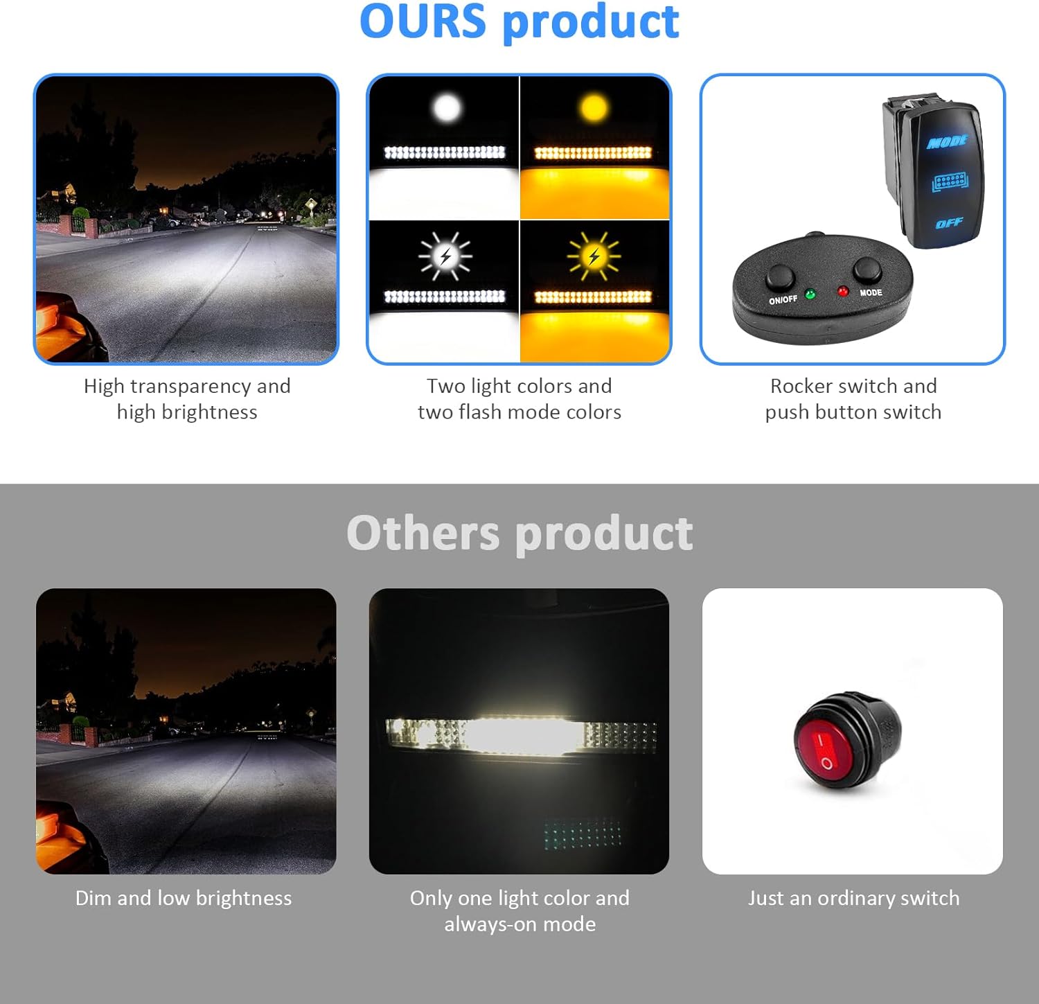 | Included Components | 2x mount bracket, 1x Amber/White Strobe LED light Bar, 1x wiring harness |