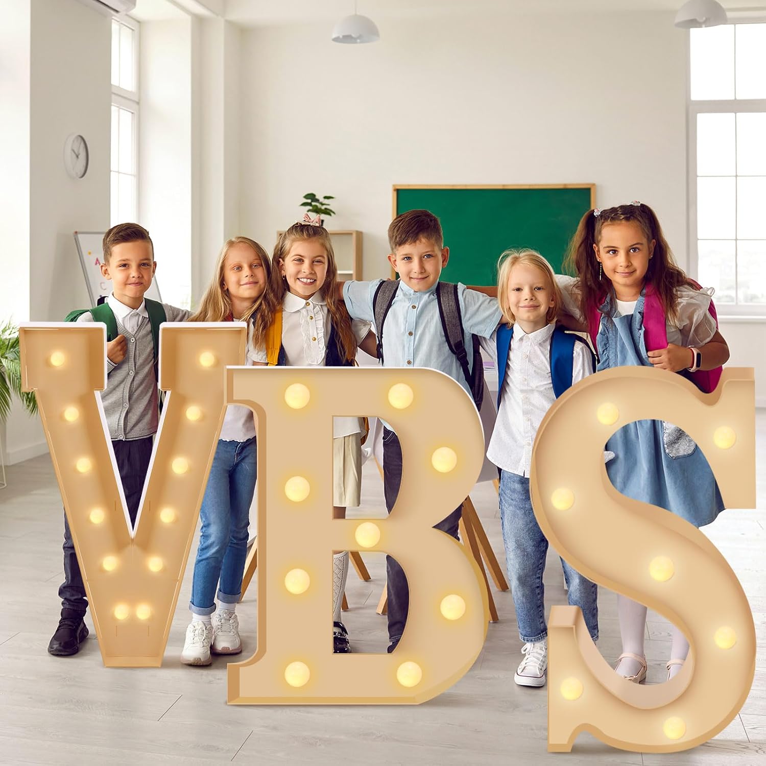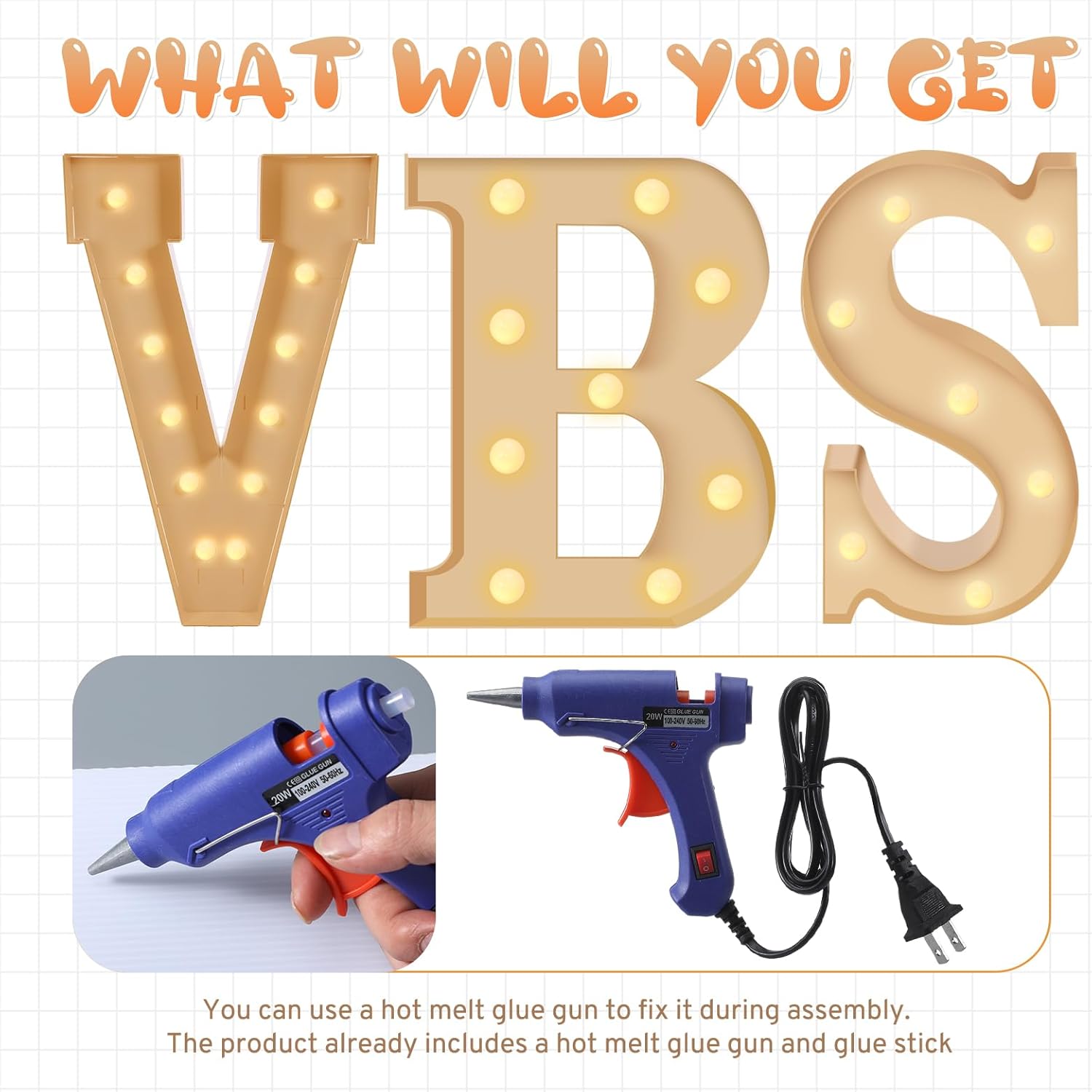 Features: Multi decorative uses: During events or parties, these giant letters for events can be showcased independently or hung on walls or fireplaces. They can also be placed on reception desks, adding a shining to any setting with their multicolor appeal. Exciting atmosphere: These large letters with lights will enrich and brighten your home or party event. Their warm lighting and stylish design inspire an engaging and uplifting ambiance, making your gatherings more vibrant and beautiful. Specifications: Material: KT board Color: multicolor Size: marquee light up letters: about 4 ft/ 120 cm Package includes: 3 x Large independent marquee light up letters 3 x Matching light string 1 x Hot glue gun 20 x Hot glue sticks Notes: Manual measurement, please allow slight errors on size. The color may exist a slight difference due to different screen displays. Winding risk may exist, and it's recommended to use under the supervision of adults. Keep our products out of skin. Our product is a battery model, please use AA size battery, please note that we do not include battery. Warm reminder: "For safety and longer life, always fully unfold the bulbs before use. Bundling them can cause overheating and hazards."