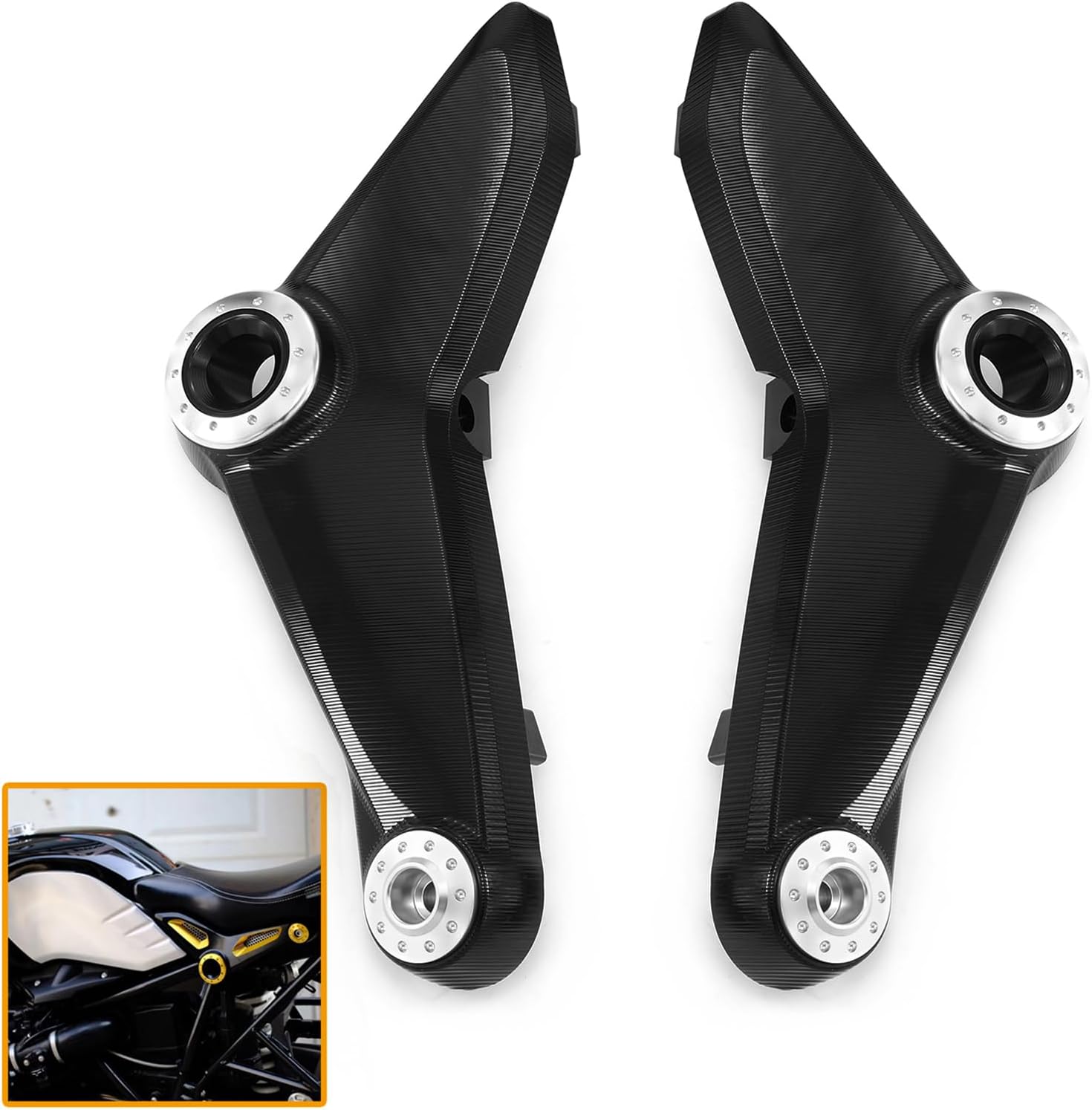 Description: Condition: Brand New Material: T6063 CNC Aluminum Color: Black Special: CNC Anodized, 3D design, Tough and Smart Usage: To exchange your old original seat bracket cover, decorate your bike, fashion and durable Mounting: Plug and Play. Instruction Included. Fitment For BM' R NINE T 2013-2023 Package 1Pair* Cover (Left+Right) Note: 1. Please check your vehicle model and year to confirm this item is suitable for it before ordering. 2. Please allow for errors due to manual measurement. 3. Installation: Instructions not included, highly recommend installed by professional. 4. Color Difference: The color of the products may deviate from their pictures due to lighting and the use of different monitors.