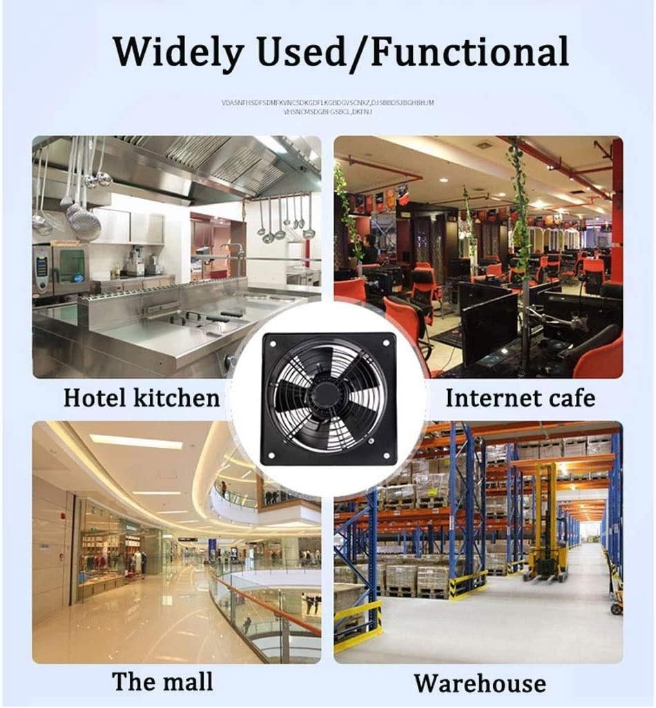 Size:355*355mm,Width: 145mm●Exhaust Fan functionVentilation: can supply fresh air to the environment and eliminate polluted air.Deodorization: It can remove the odor and odor of special places such as toilets.Dust removal: remove dust from the workplace and home environment.Drainage: remove the humid air from the bathroom, kitchen, etc.●Applicable sceneSuitable for kitchen, bathroom, workshop, office, night club, chess room, internet cafe, entertainment room, etc.●Product Features:※Rated frequency: 50Hz※Rated voltage: 110-2400V※Input power: 44W/63W