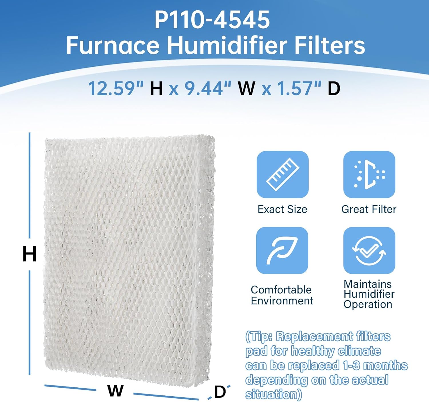 • HUMIDIFIER FILTER PAD: Humidifier water panel filter part number is P110-4545. Humidifier pad replacement for bryant assists whole house humidifier to operate by dispersing an even and clean mist of water, transforming the air in your house from dry to moist, providing you with a comfortable indoor environment.
