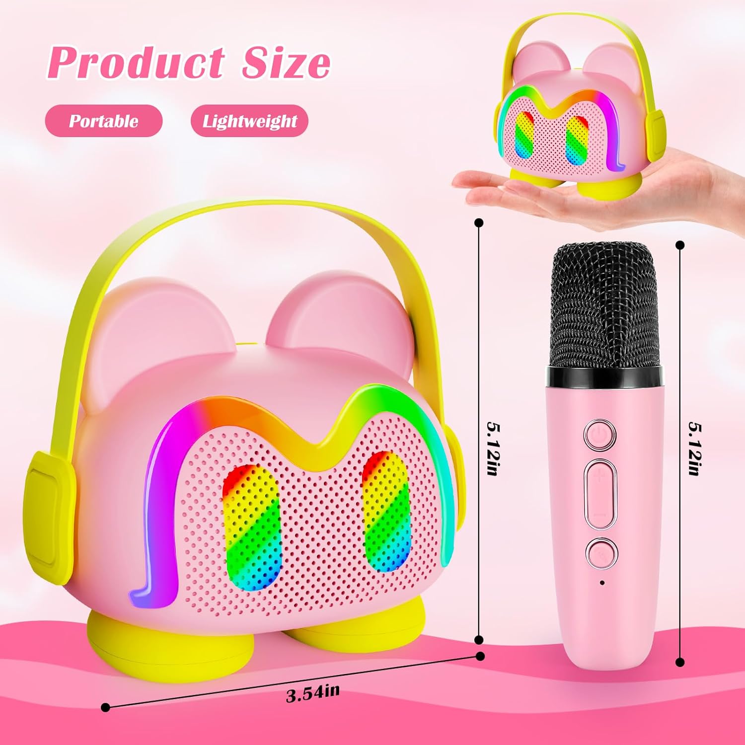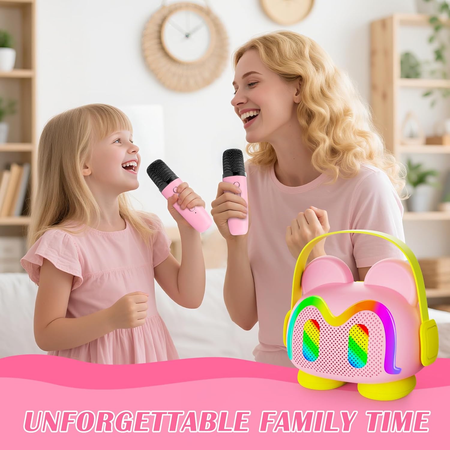 Mini Karaoke Machine with 2 Wireless Microphones for Kids, Portable Karaoke Machine for Kids, Kids Karaoke Machine Toys for Girls Boys Gifts for Home Parties Birthday (Pink)
