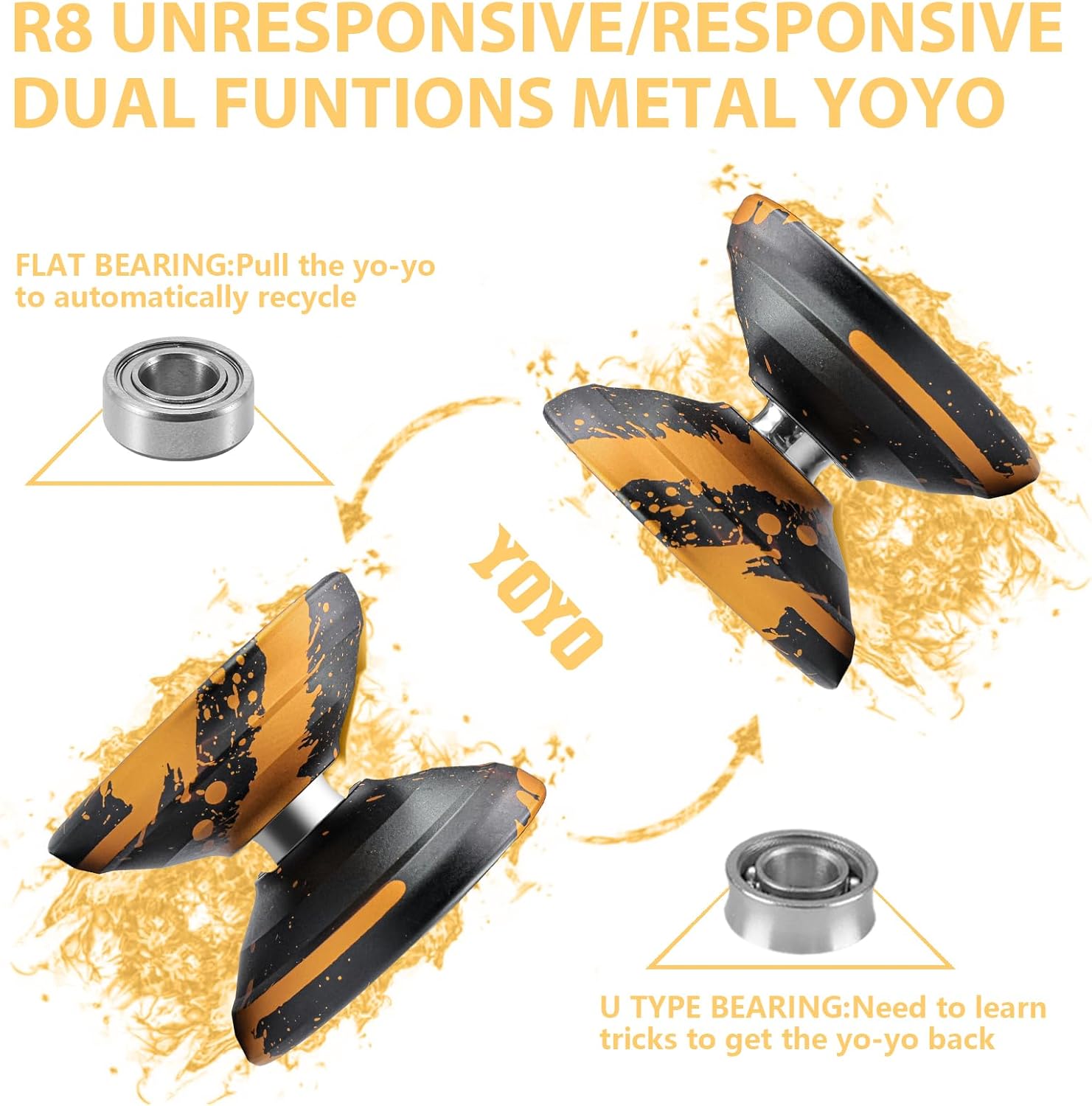 | Included Components | 1 high-quality professional-grade stainless steel KK bearing for yo-yo, 1 portable waist bag 1 yo-yo bearing removal tool, 1 three-finger glove, 10 fluorescent yellow professional replacement strings, R8 Black Gold yoyo |