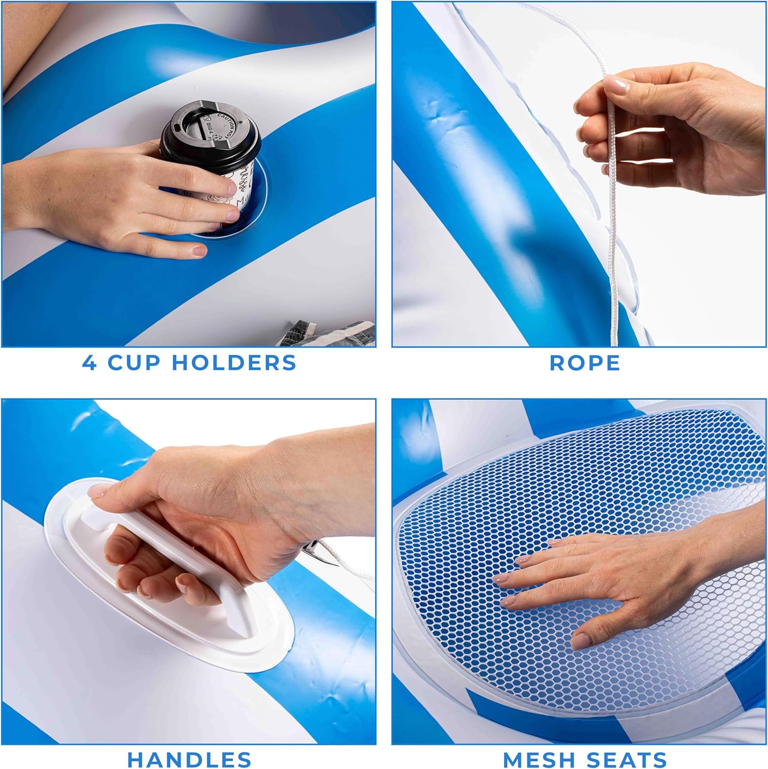 For every pool fan, the Zone Tech Inflatable Pool Recliner Luxury Float is an absolute must. It is constructed with high-quality materials and is intended to be as comfortable and long-lasting as possible. It has handles for easy lugging around, a built-in cup holder, a supportive and comfy design. It is ideal for using at the beach, lake, or swimming pool because it is lightweight and simple to assemble and disassemble. One or two people can utilize the float, which is ideal for reclining and unwinding on hot days. It's a fantastic adult present that will bring you hours of entertainment and pleasure.