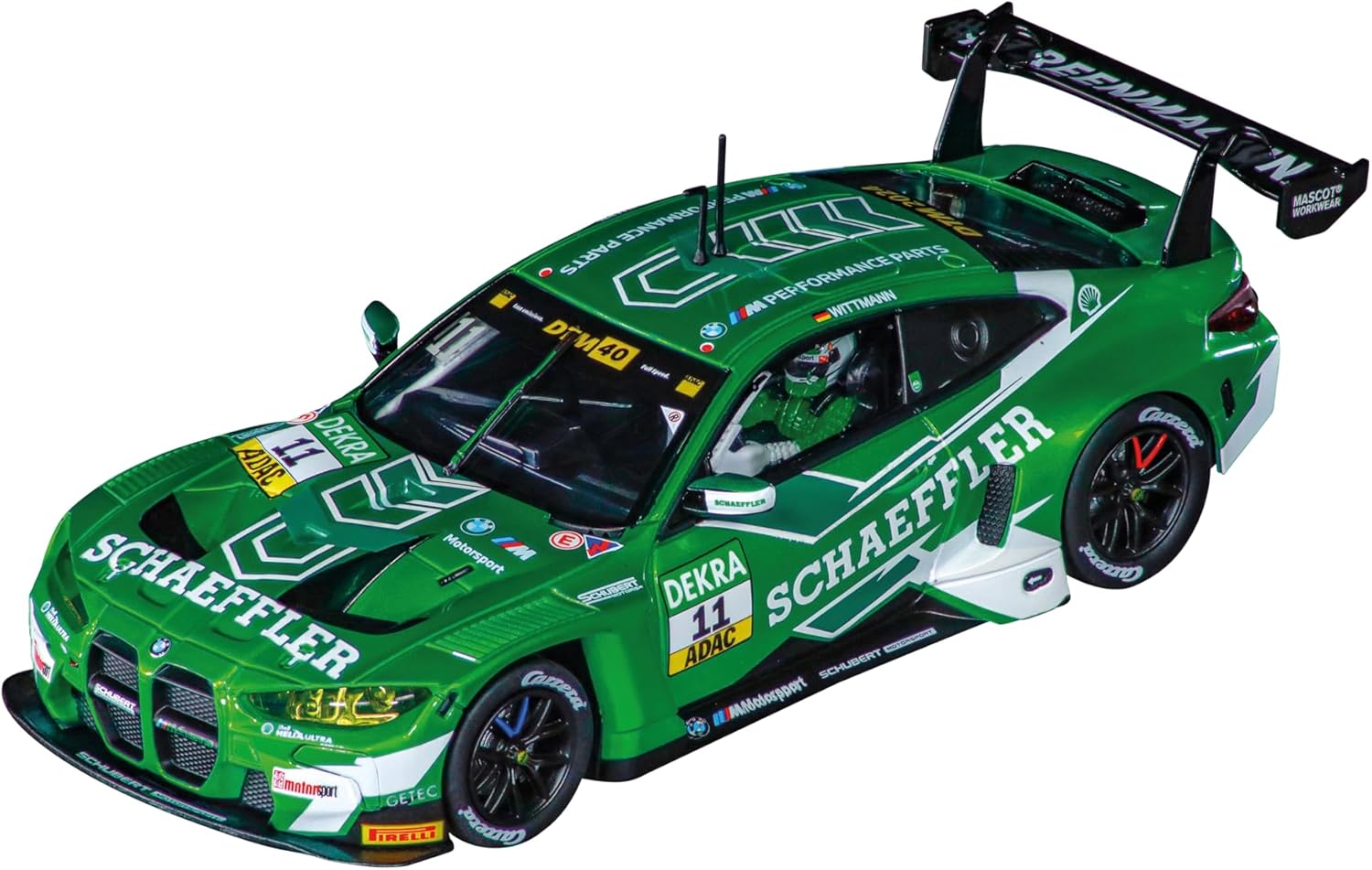 Carrera DIGITAL 132 Slot Car 20032077 - BMW M4 GT3 "Schubert Motorsport, No. 11" DTM 2024This Carrera Digital 132 slot car racing vehicle is powered by an E200 motor. Each Carrera digital slot car is fitted with replaceable double contact brushes for making maximum contact with the slot car racetrack while downforce magnets make for quick cornering and great handling. Carrera Digital 132 slot cars are real head-turners with high-quality tampo-printing over detailed molds designed to faithfully replicate the original car. Working front headlights and rear brake lights add to the stunning look of your slot car and even the interior and driver inside looks just as good as the exterior! This Carrera Digital 132 Car in 1:32 scale will work on all Carrera Digital slot car tracks. The switch located on the bottom of the car also allows you to switch to analog mode for racing on a Carrera Evolution slot car race track.