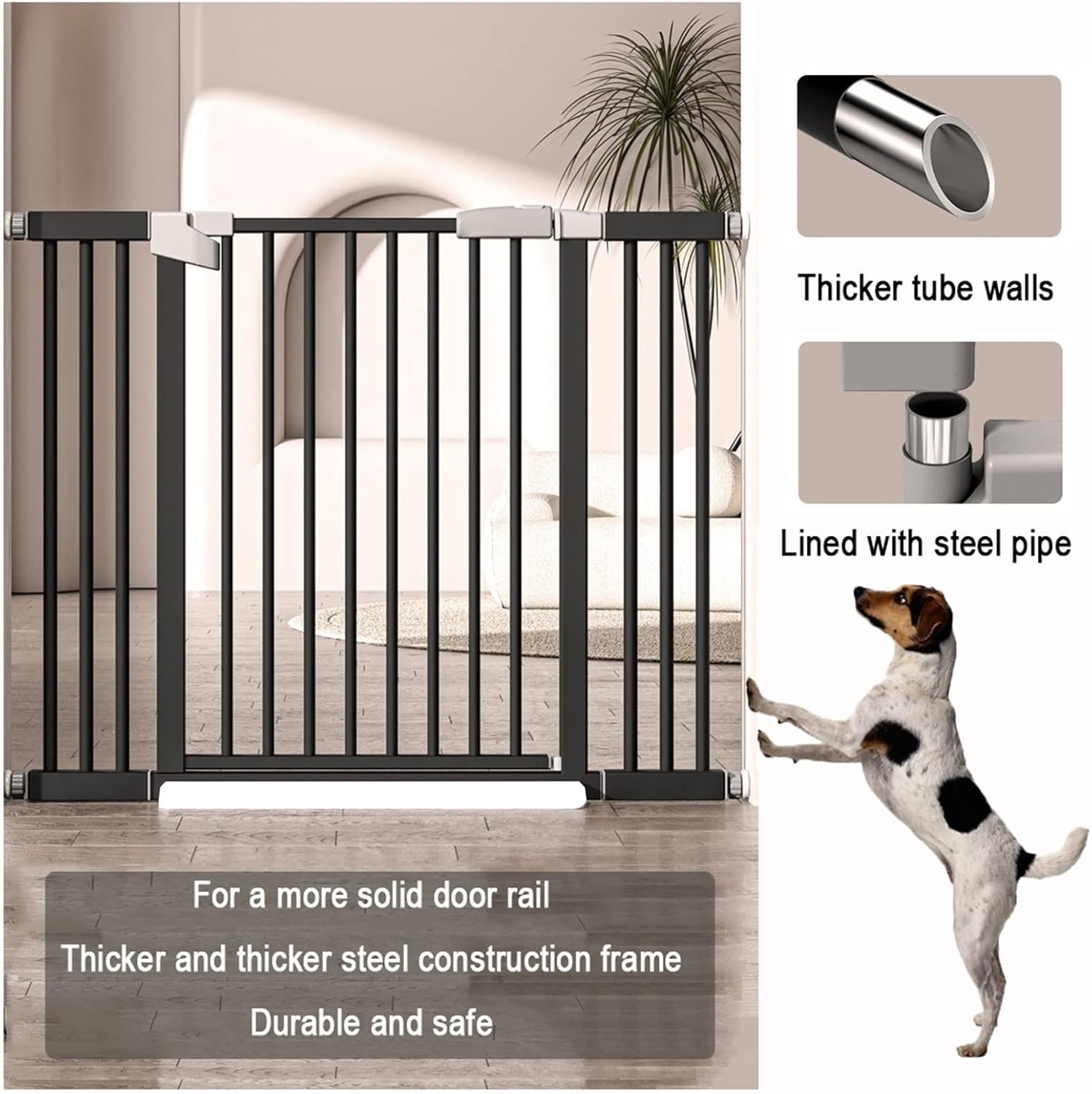 When your little one crawls or walks, at home has pets or walks, you can keep them safe from dangerous areas such as with the extendable safety gate. Pet safety gate, perfect solution for doors and stairs blocking the path for babies and pets needed to provide security throughout the house.The stair gates are used for children and pets to block their exit or entrance, in a closed environment to play, providing a safe place. Product parameters: Product Name: Pet Safety Gate Colour: black. Size: Height 78 cm Applicable scenarios: for any quality of door, stairs, doors, hallways Width adjustments: 63-70cm, 79.5-76cm, 76-83cm, 83-90cm, 90-97cm, 97-104cm, 104-111cm, 111-118cm, 111-118cm, 118-118cm, 5-49. 2", 125-132cm, 132-139cm, 139-146cm , 146-153cm 63-83cm Package Content: 1 x Security Door 1 x Accessory Set 1 x user manual (English language not guaranteed). 1 x U-shaped accessories 83-153cm Package Content: 1 x security door (with separate extensions) 1 x Accessory Set 1 x user manual (English language not guaranteed). 1 x U-shaped accessories Assembly Instructions: This initial misalignment/gap of the door at the level of the locking mechanism is eliminated by tightening the locking screws into the frame. WARNING: Read the instructions before installation, as improper installation can be dangerous. WARNING: The safety barrier should not be installed through windows. WARNING: Never use without wall cups. This safety barrier can be mounted on firm, intrinsically stable surfaces with the provided fittings and this also applies to extensions provided or extensions compatible with the product. Welcome to buy!