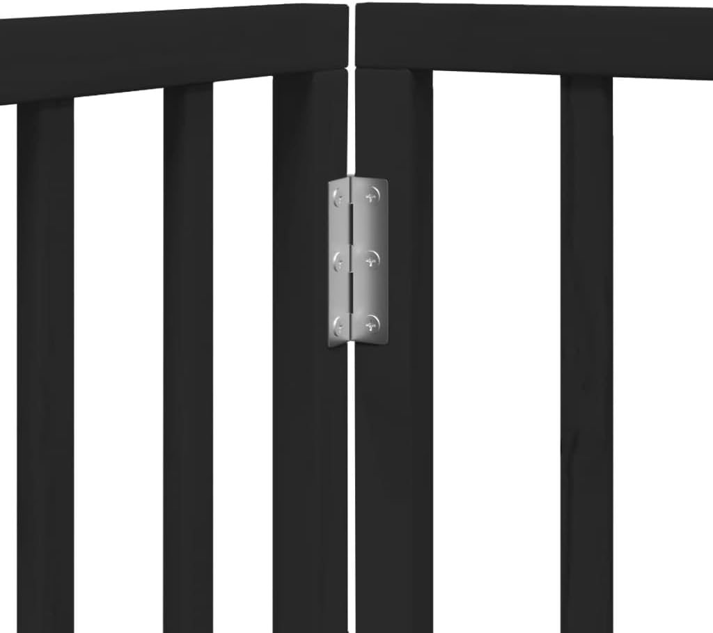 The dog gate puts your pet in a fixed activity area, which can keep your pet safe and prevent you from being disturbed.Durable material: The dog gate is made of poplar wood with water-base paint, making it durable, long-lasting, and easy to clean.Easy to use: The dog gate does not require installation or drilling that doesn't damage your home. This dog gate can be totally foldable when without feet, making it easy to carry and store in the closet or somewhere else.Multiple applications: This dog gate can effectively prevent your pets from jumping over and getting through. Therefore, it is perfect for keeping your pets safe in the living room, kitchen, stairs, and doorway.Colour: BlackMaterial: Poplar woodDimensions of each panel: 19.7 x 23.6 x 0.8" (W x H x T)Total length: 59.1 "Bar spacing: 2.4 "Suitable for small/medium dogFreestanding and foldable (No installation)Assembly required: YesDelivery contains:3 x Panel6 x Hinge1 x Wrench