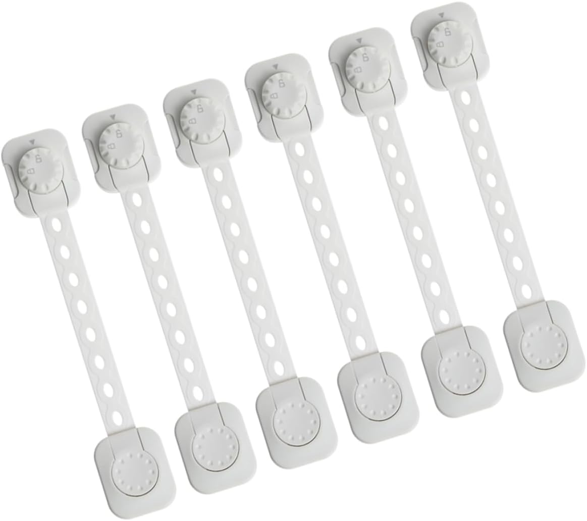 Package Include 18 x Safety Locks Characteristics - Material: ABS cabinet adhesive locks. - Color: White baby guard lock. - Size: Approx. 21.7 x 3.8 x 2.3 cm. - Designed to open and close easily and quickly for adults. Simply 90 degree and press the side-button to unlock. With lock for you convenient operation child proof belt locks. - Wide application. Suitable for all the home appliances and furnitures, such as cupboard, cabinet, drawer, wardrobe, refrigerator, toilet cover, trash can, etc baby safety locks. cabinet locks for baby - With strong adhesive tape to keep your locks in place permanently. Removable without leaving any residue. - Adjustable lock belt. to cut the length you needed. And bendable, flexible belt for durable long term use. - Stop trapped fingers and help protect children from accidental injury.Goods Descriptionbaby safety locks When babies start crawling and walking, they will start exploring all they are curious about, but accidental injury will also come with it.baby guard lock At this point, parents should try their best to create safe environment for kids.child proof belt locks Our product will be one of the best helpers.child cabinet locks It is a baby safety lock which is easy to install with no tools needed.Drawer Safety lock Simply paste on cabinet, cupboard, drawer, refrigerator, etc