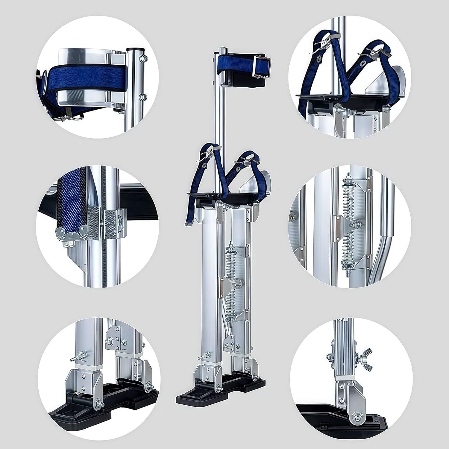 Tired of climbing ladders repeatedly? Just reached the workbench only to find it's off by 2mm, forcing another climb down!Or stuck in monotonous tasks all day, feeling like time drags on endlessly?With our stilts, these frustrations are a thing of the past! Easy to put on, comfortable fit.No more endless ladder trips—simply slip on the stilts and move freely around the room! Production efficiency is guaranteed to soar!SpecificationsProduct Name: Adjustable StiltsMaximum Weight Capacity: 242 lbs / 110 kgAdjustable Height Range: 15-23in , 18-30in , 24-40inFrame Material: Aluminum AlloyBase Material: RubberColor: SilverPackage Contents1× Gypsum Board StiltsImportant Notice:1.All product images are taken under natural light, and there may be slight color differences due to differences in lighting conditions, shooting angles, and computer resolutions. The actual product shall prevail.2.Due to manual measurement and different production batches, there may be a size error of 1-3 centimeters. We apologize for any inconvenience caused.Product Instructions: 1. When putting on stilts, use a sturdy support for assistance. 2. When standing up, firmly grasp a stable object and rise slowly.3. Do not adjust to the maximum height during initial use—begin at a lower height and gradually increase as you gain proficiency. 4. Balance may be unstable during first use; assistance is recommended to prevent falls and avoid personal injury or property damage. 5. Move only forward and backward—avoid sideways tilting to maintain stability.