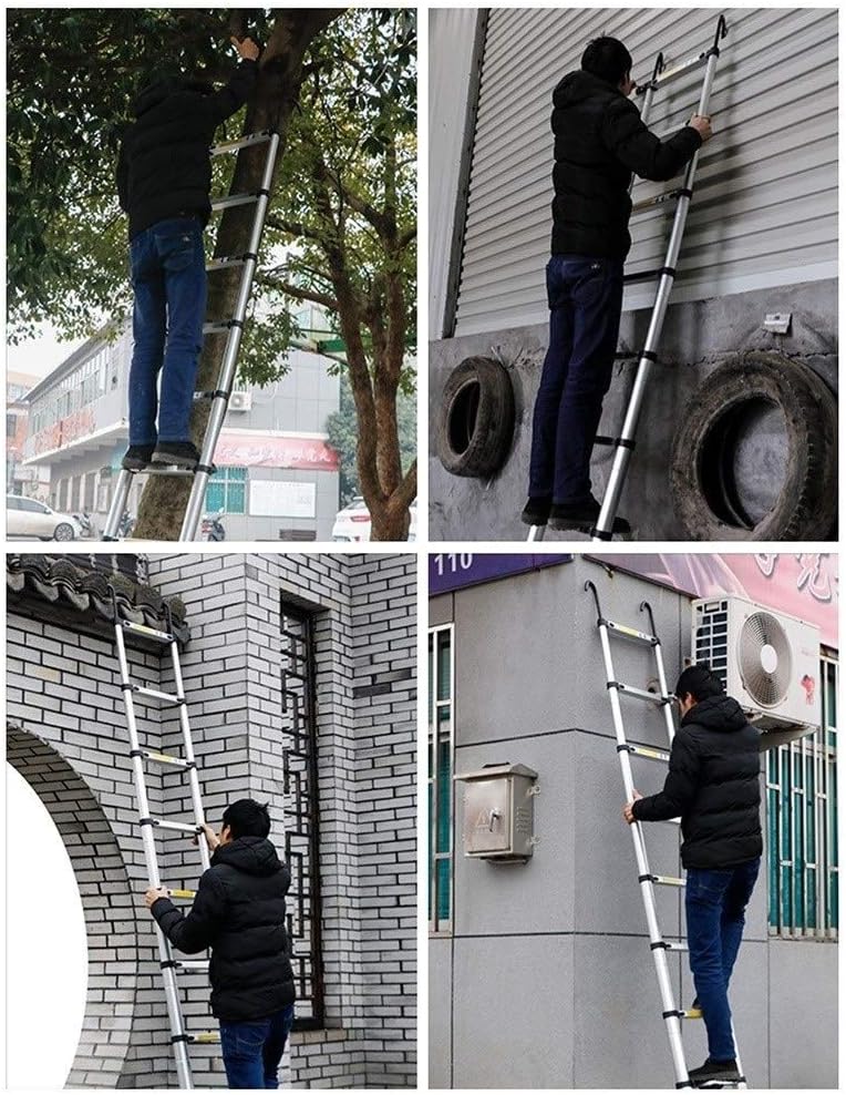 - This is our new multi-purpose folding ladder. Our ladders are lightweight, portable and suitable for a a variety of domestic and commercial uses. Using such kind of tools have already very popular in DIY projects, tradesmen, whatever garden or workshop. - SpecificationMaterial: Aluminium alloyMaximum user weight: 150kg/ 330lb- Most liked features:For both individual and professional useDurable, and rustproof it's well worth the money - Technical features:Save space:Easily fits into cupboards, the back of a van or the boot of a car. Lightweight and easily portable .This practical and reliable ladder will prove worth its weight in gold when tackling a variety of tasks in and outside the home; no more struggling with awkwardly long extension ladders.Great for loft access, window cleaning, gutter cleaning, interior and exterior painting, general decorating, accessing cupboards, maintenance tasks and more!Thanks to the ladder's extendable design, you can safely get into smaller confined spaces which a larger ladder wouldn't allow.- Please Note: Do not place your hands or fingers between the rung when closing the ladder.- Package contents:1 x Telescopic ladder★ Note:1. Because of the manual measurement 1-3cm size error, take physical size must prevail.2. There is a slight difference between the image and the actual element caused by the brightness.3. Incorrect maintenance mode will seriously affect the appearance of the product and the useful life.4. If you have any further questions about our Ladder , please contact us first. We are happy to help you. I hope you have a wonderful life.