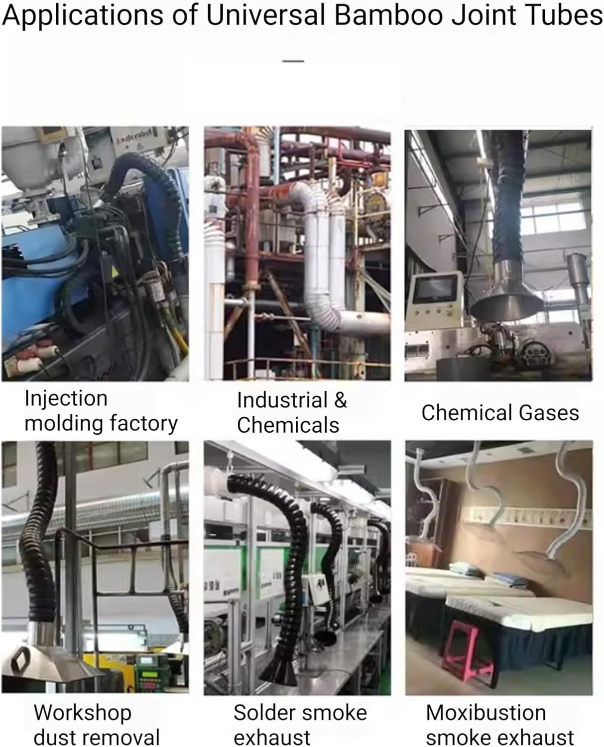 Introducing our versatile silicone smoke exhaust arms, designed for both square and round openings, perfect for various professional environments. These modern articulated arms are optimized for enhanced airflow control, making them ideal for applications in welding, laboratory tasks, or any workspace with limited ventilation.Crafted with functionality and flexibility in mind, our smoke exhaust arms deliver targeted suction and efficient smoke removal, ensuring a cleaner and safer work environment. Whether you're engaged in intricate projects or simply need to maintain a clear workspace, these arms adapt seamlessly to your specific requirements, promoting productivity and comfort.Specifications:- Material: Durable POM and silicone- Length: Adjustable from 80 to 200 cm (31.5 to 79 in)- Interface outer diameter: 50 mm (2 in) / 75 mm (3 in)Package includes:- 1 x Tubing HosePlease note:1. Manual measurements may result in a slight 1-2 cm discrepancy.2. Color variations may occur due to different monitor settings. Thank you for your understanding.Invest in our silicone smoke exhaust arms today to cultivate a more efficient working atmosphere, enhancing safety and overall performance. Perfect for professionals seeking reliable smoke extraction solutions, these arms are your go-to choice for maintaining a clean and effective workspace.