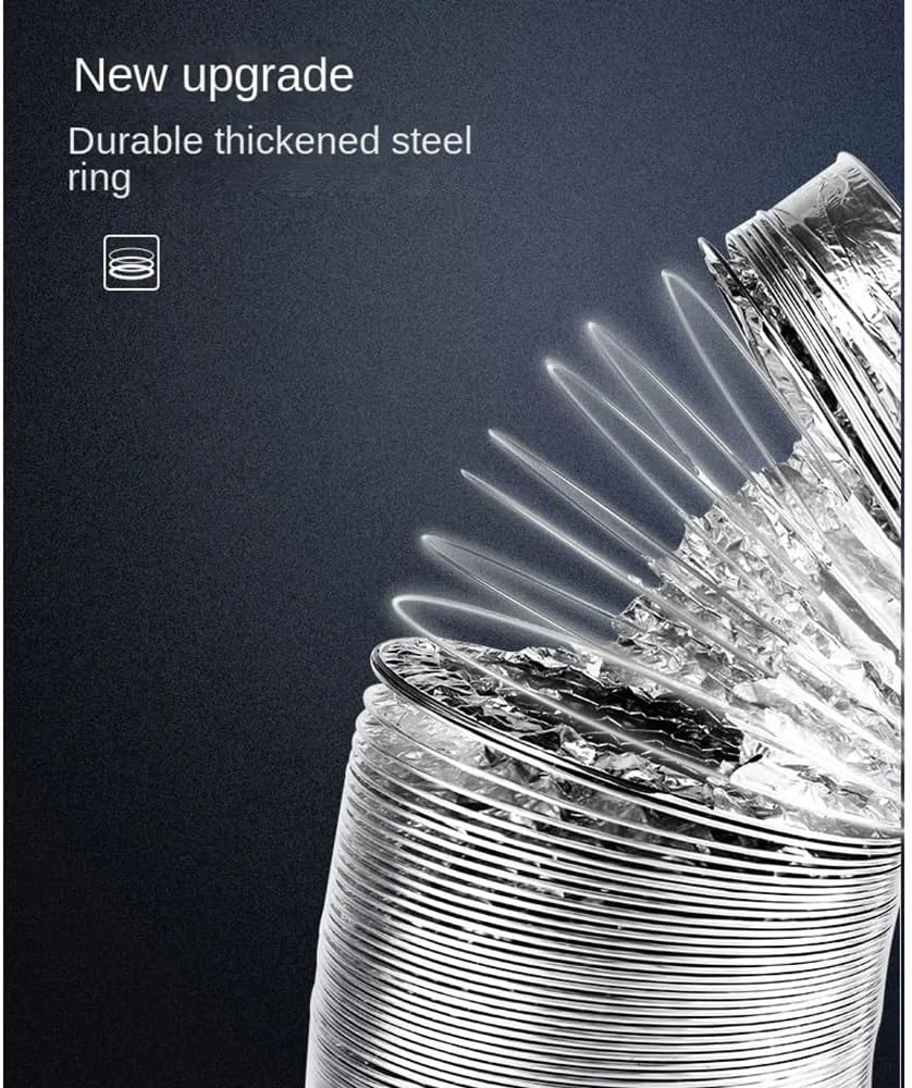 Size Diameter ∅60mm/80mm/100mm/110mm/120mm/150mm/160mm/170mm/180mm...... Kitchen Bathroom Silver Encrypted Aluminum Foil Ventilation Duct, Material: Aluminum Foil, PVC, Steel Ring, Fireproof Coating.This product can remove indoor heat, emit carbon dioxide, increase temperature and humidity, etc. It is ideal for heating ventilation and air conditioning, kitchens, bathrooms, greenhouses, grow rooms, grow tents and more.Made of double layers of overlapping aluminum foil. Fireproof material, non-flammable. Non-rigid elbow, suitable for all kinds of walls, molded in one piece. Embedded with 1.0-1.2 mm steel ring in the center, free bending, not easy to deform.Product DescriptionColor: silver* Material: aluminum foil, PVC, steel, steel ring and fireproof coating.* Size: inches Diameter: ∅60mm/80mm/100mm/110mm/120mm/150mm/160mm/170mm/180mmLength: ∅1.5m/2m/3m/4m/5m/6m* Made of thick and durable aluminum (double-layer aluminum), fireproof coated aluminum foil ventilation duct, easy to keep clean.* Application Scenario: Ideal for Heating, Ventilation and Air Conditioning (HVAC), Kitchen, Bathroom, Greenhouse, Growing Room, Growing Tent, etc.* Removes indoor heat, emits carbon dioxide, raises temperature and humidity, and more.Note: Ventilation ducts are made of aluminum foil material. Please use even force when stretching so as not to damage the product by too much force.