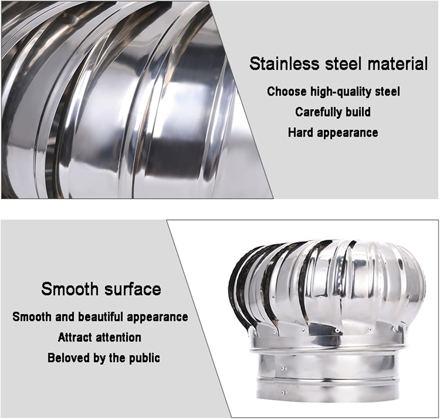 Product descriptionRotating Chimney Cowl is of excellent quality and construction, ver substantial in weight, looks lovely on top of the chimney, spinning away.No noise at all even in strong winds.You can use it for your own homes and future projects.-- Manufactured from robust Stainless Steel.-- Suitable for use with solid fuel.-- Fits most standard chimney pots-base.-- Very easy to install-only a screwdriver is required.-- It has not been used with anthracite fuel or any other fuel with a moisture content over 20%.Product name:Rotating Chimney CowlMaterial:304 stainless steelHigh temperature resistance up to 450 ° C.Welding technique:plasma weldingAttractive:Protected against rain, snow or wind and birdsProduct Quantity: 1 setPrompt:Please be careful when unpacking and installing. It is recommended to wear gloves to avoid scratches.Warning: If your chimney is more than 1 meter below the apex of your roof any anti downdraught cowl can become ineffective.If you have any questions, please feel free to contact us and we will get back to you within 24 hours.