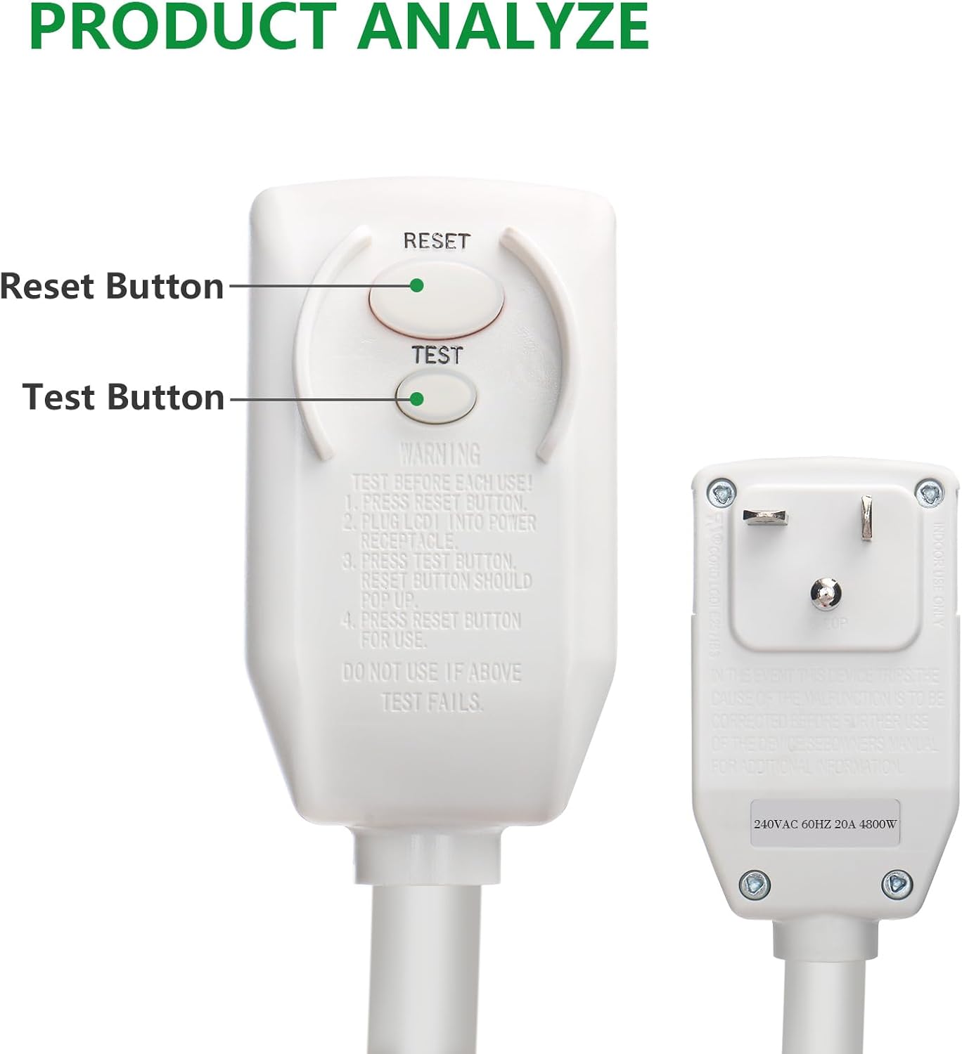 Restore Safety to Your Cooling System with a Professional LCDI CordIs your air conditioner's power cord frayed, damaged, or tripping the breaker? Our 20 Amp 240V LCDI Replacement Power Cord is the gold standard for restoring the safety and efficiency of your high-powered window AC or PTAC unit. Designed to meet modern fire safety codes, this cord actively monitors for current leakage that could lead to electrical fires.Precision Engineered for 240V Systems Please note: This cord features a NEMA 6-20P plug, designed for 240-volt outlets only. With a massive 4800W capacity and heavy-duty 12AWG internal wiring, it provides the stable, cool-running power your air conditioner needs during the peak of summer heat.Technical SpecificationsPlug Type: NEMA 6-20P (240 Volt, 20 Amp)Wire Gauge: 12 AWG / 3 Conductor (12/3)Power Rating: Max 4800 Watts, 240VACSafety Feature: Leakage Current Detection Interrupter (LCDI)Certification: UL Listed (E-file number verified)Compatibility: Window ACs, PTAC Units, and high-load appliancesWhy Choose Our LCDI Cord?Fire Prevention: In-line LCDI technology detects even tiny insulation leaks, cutting power before sparks can start.Color-Coded Ease: Pre-stripped ends with industry-standard coloring (Black, Red, Green) for error-free wiring.Built to Last: Impact-resistant plug housing and flexible, weather-resistant cord jacket.Frequently Asked Questions (FAQ)Q: Will this work with a standard 120V wall outlet? A: NO. This is a 240V NEMA 6-20P plug. One blade is horizontal and one is vertical. It will not fit into a standard 120V home outlet.Q: What do the buttons on the plug do? A: The "Test" button simulates a leak to ensure the interrupter works; the "Reset" button restores power. We recommend testing monthly for maximum safety.Q: Is this cord UL certified? A: Yes, our product is fully UL certified, ensuring it meets the most rigorous safety and performance standards in the USA.