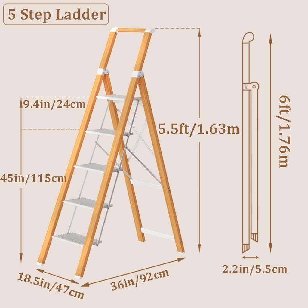 Easy Storage with Compact Design: The step ladder can be folded, quite portable & space-saving for storage. It's portable in your car trunk, or can be carried everywhere. Compact enough to slide under a bed, stash in a closet / behind a door, or simply lean against a wall.Ladder Type:Folding Ladder/Step Ladders Material:AluminumSize:4 Step Ladder:18in/46cm W,4.5ft/1.39m H,5 Step Ladder:18.5in/47cm W,5.5ft/1.63m HLoad capacity:150KG/330LBWide Range:for home, attic, RV, outdoor work, building maintenance, window cleaning, decoration workPackage Included:1 x Ladder (excluding any products)Wide Application:This ladder is a must-have for cleaning, painting, decorating, and all your DIY projects, it allows you to effortlessly reach those hard-to-access areas, perfect for home offices and both indoor and outdoor use, it takes the hassle out of your DIY or cleaning tasks, with this ladder, you can easily complete your projects.