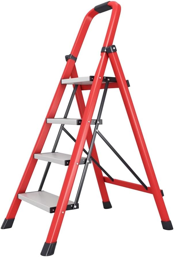 【Product specification】--Color: Grey , White , Red--Product material: carbon steel--Number of treads: 4 step ladder--Top pedal height: 91cm--Package Contents:1 X Ladder【Tips】: We only sell Ladder, other items are props. All data is measured by hand with a slight error. Due to physical factors such as light, camera color and lighting, there may be subtle color differences.