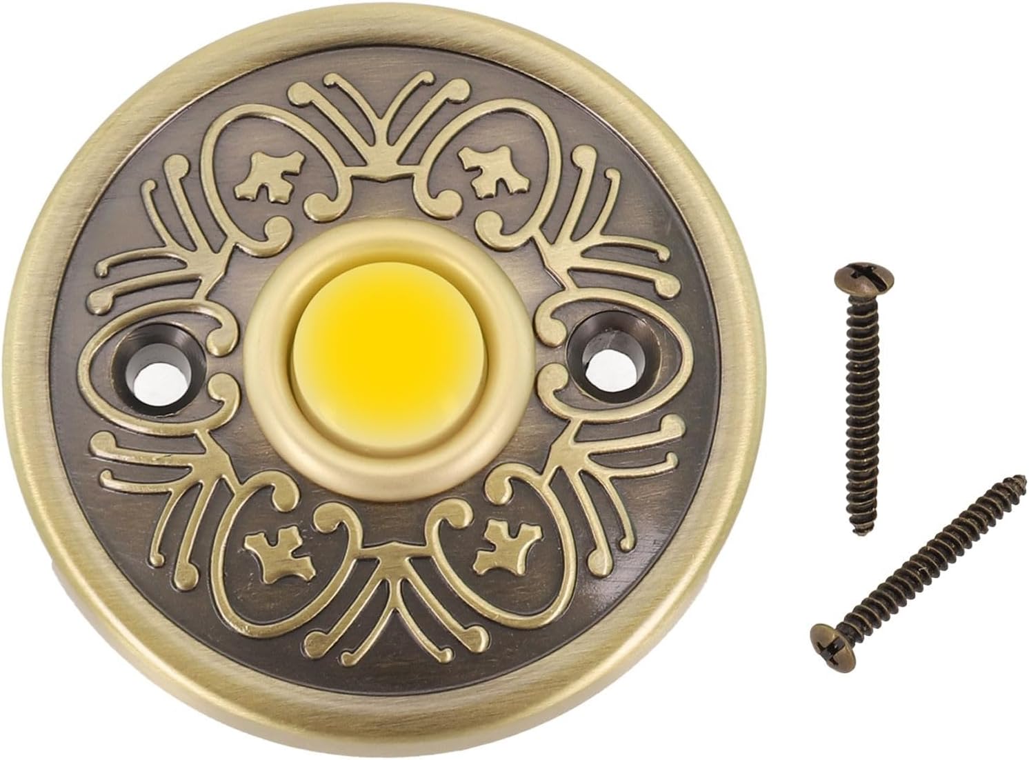 Features:*Sturdy Material:This doorbell push button is made from high-quality solid iron material, its durability and longevity. It is built to withstand the elements and daily use, making it perfect for front doors of homes.* Illuminated Button:Equipped with a built-in light, which illuminates the button when pressed. This adds a touch of elegance to your front door and makes it easier to locate the button in low-light conditions, providing convenience and safety.*Easy Installation:Our doorbell push button can be effortlessly mounted on any wall. It is compatible with most wired doorbell systems, making it for versatile for front doors or garage door openers.*Sleek and Stylish Design:Whether you have a modern or for traditional style, this button will seamlessly blend in. Its simple yet elegant appearance enhances the overall aesthetic appeal of your front door.*Weatherproof Design:Designed to withstand all weather conditions, the doorbell push button is weatherproof, protecting it from rain, snow, and extreme temperatures. This ensures its functionality and longevity, allowing you to enjoy its benefits for years to come.Specifications:*Product Name:Metal Doorbell Push Button*Material:Iron*Size:About 5.6 cm/2.2 inch*Color:BronzeInstallation precautions:Red+is the positive poleVoltage range: DC12-24V Package Content:1*Metal Doorbell Push Button2* Screws