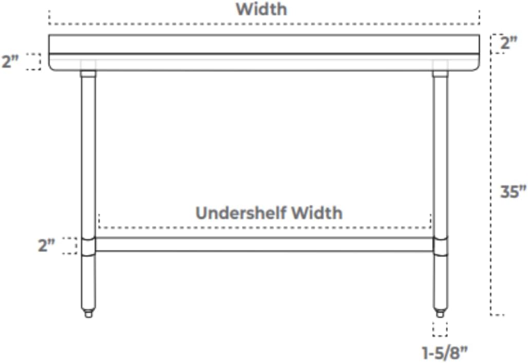 | Included Components | Worktables, Bullet Feet, 1-5/8" Diameter Legs, 2" Backsplash, Undershelf |