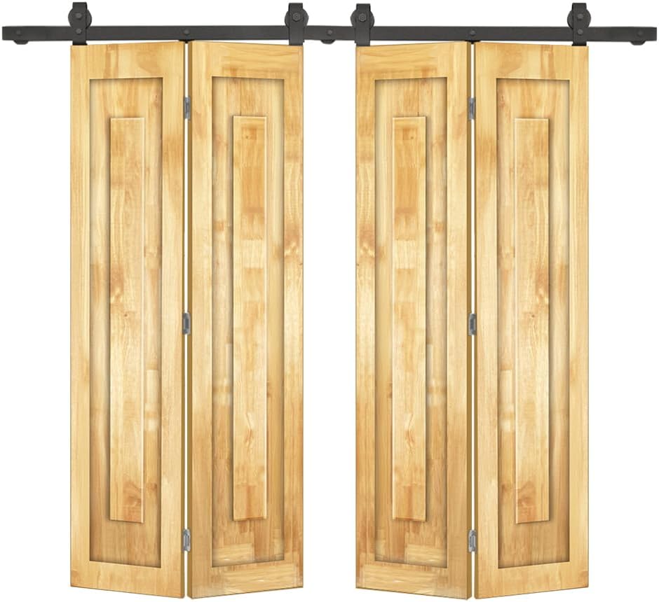 CALHOME bi-fold barn door with sliding hardware kit contains everything needed to transform any doorway from a traditional door into a convenient, space-saving, and stylish sliding bi-fold door. Bifold doors are folding doors made up of two pieces of door leaf's that can be folded when opened, maximizing the use of space. Compared to sliding doors and swing doors, bi-fold doors can open a wider space while saving 50% of floor space (swing-space), making them ideal for installation in areas with limited space, such as bedrooms, bathrooms, kitchens, and more.