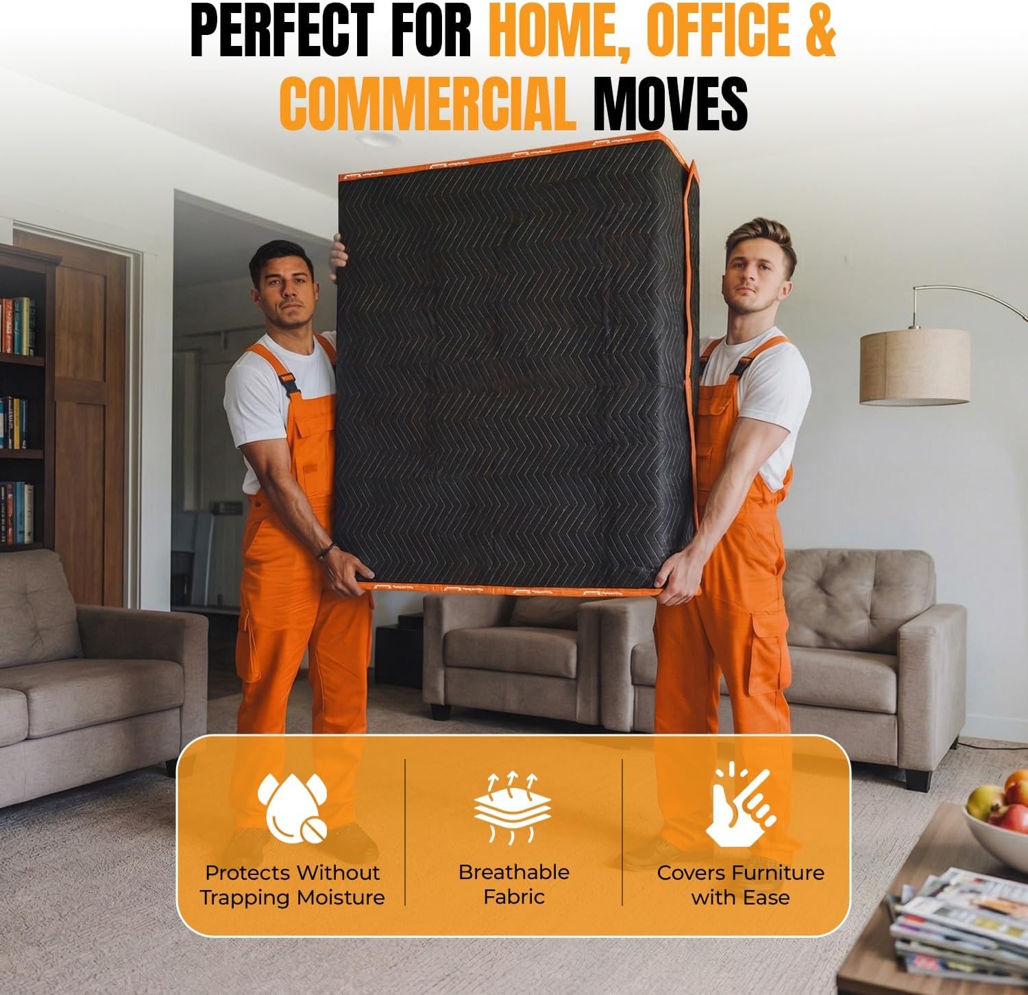 • 📦【Reusable And Easy To Handle】Our lightweight yet padded furniture moving blankets construction allows repeated use while remaining easy to fold, carry and store between moves.