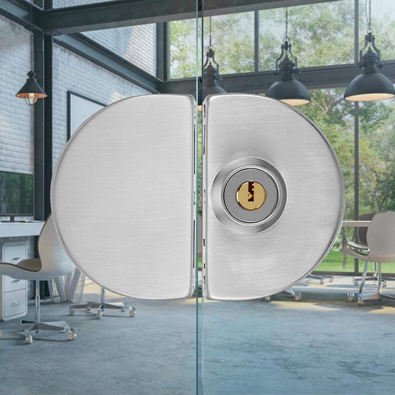 Glass Door LockA glass door lock is specifically designed for glass doors with a center opening, commonly referred to as "double doors" or "French doors." These doors typically consist of two glass panels hinged on opposite sides, meeting in the middle when closed.Featureshigh quality. Easy to install and remove. Designed in double curved door bolts, Made of high quality stainless steel, durable. Comes with 3 keys. This lock set will be suitable for family house, flat gate, office door, etc. Can be internal or external control, the two sides all can be locked, inside locked use knob, outside locked use key. Fits for 10-14mm thickness frameless double swing or sliding toughened glass door. Please Check your glass door's thickness. Specification: Name: 304 Stainless Steel Glass Door Lock. Color: Silver. Material: 304 Stainless Steel. Size: 140x96x45mm(5.46x3.78x1.77in). Suitable For Door Thickness: 10-14MM. Suitable For Door Seam: >5MM. Surface: Brushed Stainless Steel. Door Direction: Either Left or Right (Equipped with 3 Keys). Applicable Place: Glass door near the wall. Quantity: 1 set.