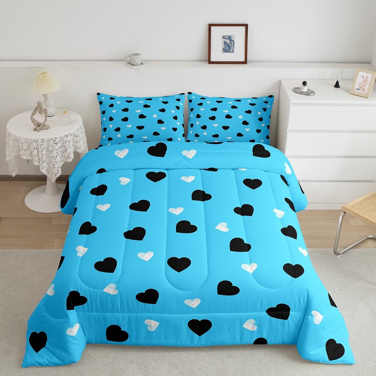 Makeover your bedrooms every season with our comforter sets; good item for your room, girls boys youth room, master bedroom Also a great decoration idea for your mom, dad, sister, brother, grandma, wife, husband, daughter, son and all other beloved Size Information:1 Toddler size comforter 42" X 58" and 1 pillowcase 30" X 20"1 Twin size comforter 68" X 90" and 1 pillowcase 30" X 20"1 Full size comforter 79" X 91" and 2 pillowcases 30" X 20"1 Queen size comforter 90" X 90" and 2 pillowcases 30" X 20"1 King size comforter 104" X 90" and 2 pillowcases 36" X 20"Useful and practical: A practical product for homes, dorm rooms, hotels, guest rooms. Comfortable to use for being polyester which is soft and breathable Unique design:Vivid colors and clear printed with digital printing. These unique designs match well with various color of your rugs, curtains, headboard, furniture, and all other decor accessories Characteristic:As manufacturers of digital printed home textiles, we follow current trends and bring you new home fashion Either a comforter to your family or friend, relative or boyfriend girlfriend, or to yourself, the item should be interesting and authentic Note:The comforter and pillow cases are printed on the front side only, the back of them are white colored