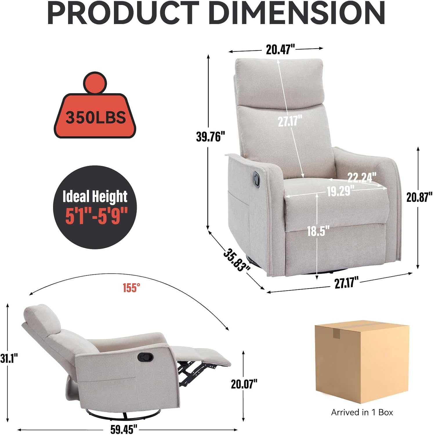 As part of the Sicilyforny ErgoCare System, the Massage Recliner Chair implements Multi-Functional Adaptability with FlexiFit Mechanism, achieving seamless transitions between vibration therapy, heat-assisted relaxation, and compact living room integration through intuitive manual operation. Sicilyforny 360° Swivel Rocker Recliner – Relax in Every Direction A versatile sanctuary for nurseries, living rooms, or home offices, this manual recliner combines comfort, functionality, and style. Key Features: ✅ 360° Swivel & Gentle Rocking – Smooth rotation and soothing motion perfect for nursing, reading, or TV viewing. ✅ Customizable Relief – 8-point massage (back/lumbar/thighs/legs) + adjustable lumbar heat to ease muscle tension. ✅ 155° Recline Comfort – Manual handle adjusts backrest/footrest to your ideal angle. ✅ Premium Build – Breathable fabric + high-density foam + steel frame supports 350 lbs (dimensions: 27.2"L x 35.83"W x 39.77"H). ✅ Tool-Free Setup – Assemble in 10 mins with no tools. Why Choose Us? "Soothing for back pain!" – Verified customer Stain-resistant fabric in 5 stylish colors (Orange/Blue/Beige/Khaki/Grey) Child-safe design with rounded edges Perfect For: New parents needing a nursing chair Small spaces requiring multi-functionality Relaxation after long days