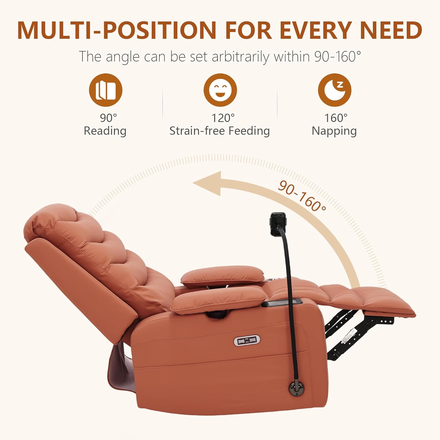 • 【Fast-Charging Phone Mount】Stay connected and powered up. The integrated fast-charging phone mount securely holds your device and provides quick charging, ensuring it's always within reach and ready to use during nursing or relaxation.