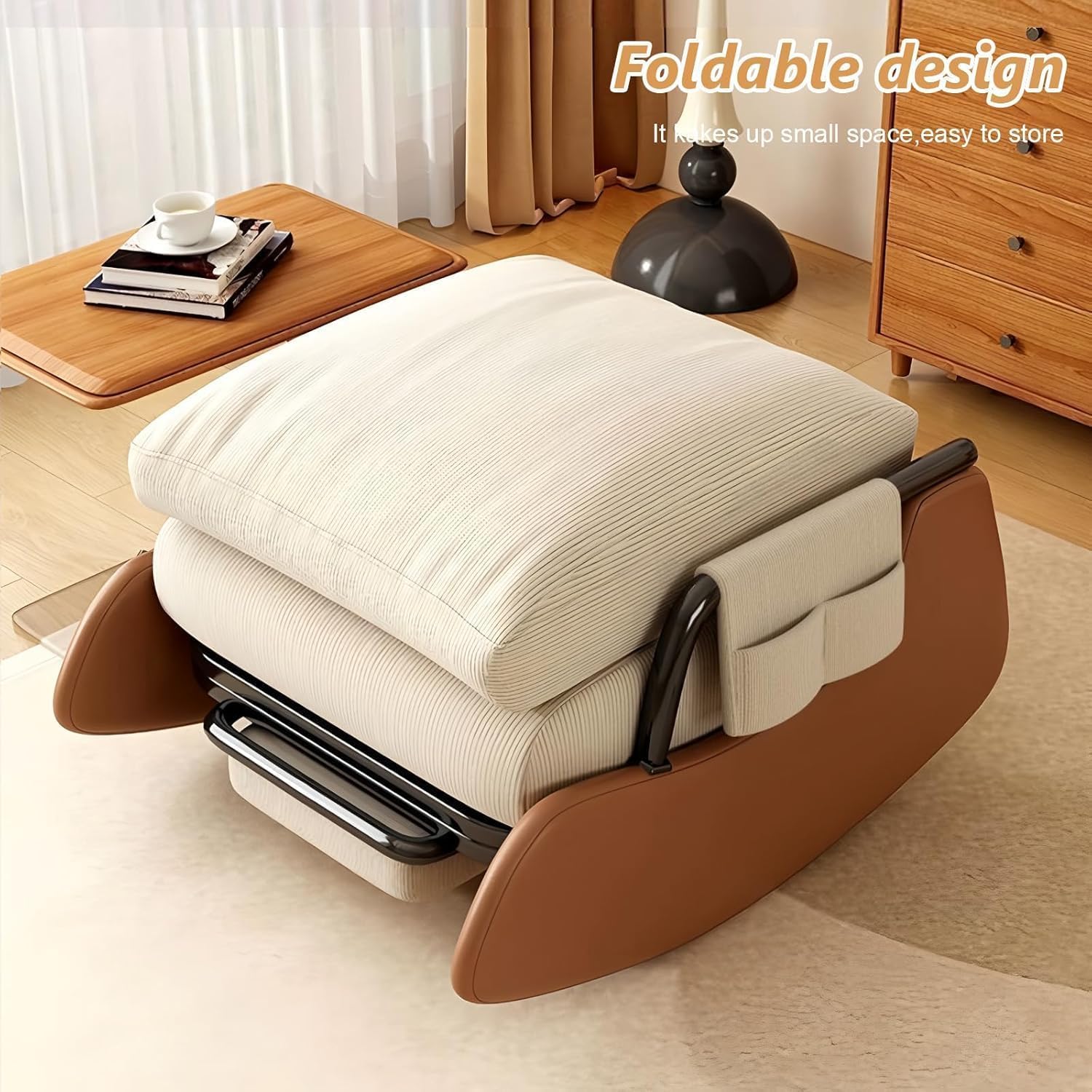• 【Rocks with You – Day & Night】Designed for long nights and lazy weekends, this rocking chair is all about comfort. Its ergonomic build supports your back through hours of sitting, while the adjustable backrest lets you switch between 3 positions (90° to 160°) — sit up for reading or recline for a quick nap. The smooth 15–30° gliding motion is gentle and quiet, perfect for soothing a fussy baby. Your little moment of calm, whenever you need it.
