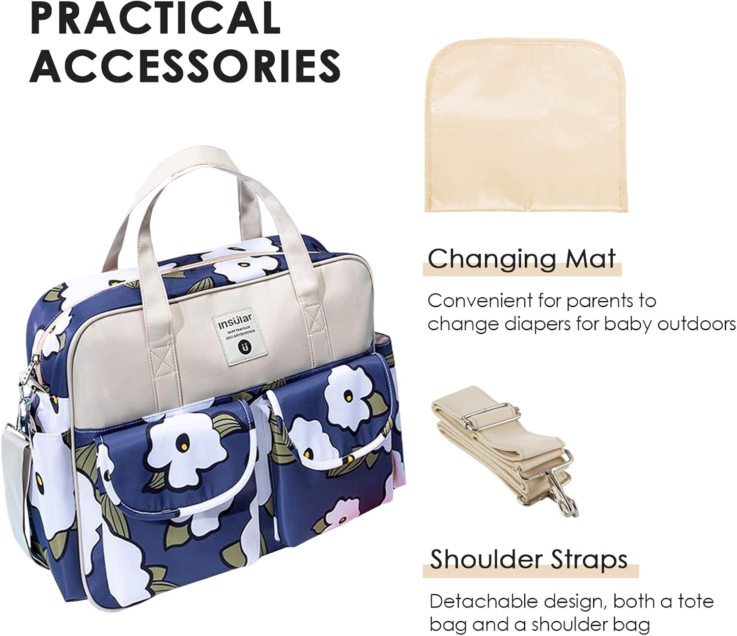 • Practical Design: Comes with a diaper changing mat(52 x 29.5cm), parents can change baby's diapers conveniently and hygienically in the outdoors. Wide opening design with exquisite smooth zippers, you can easily find and access to needed items in the tote bag.