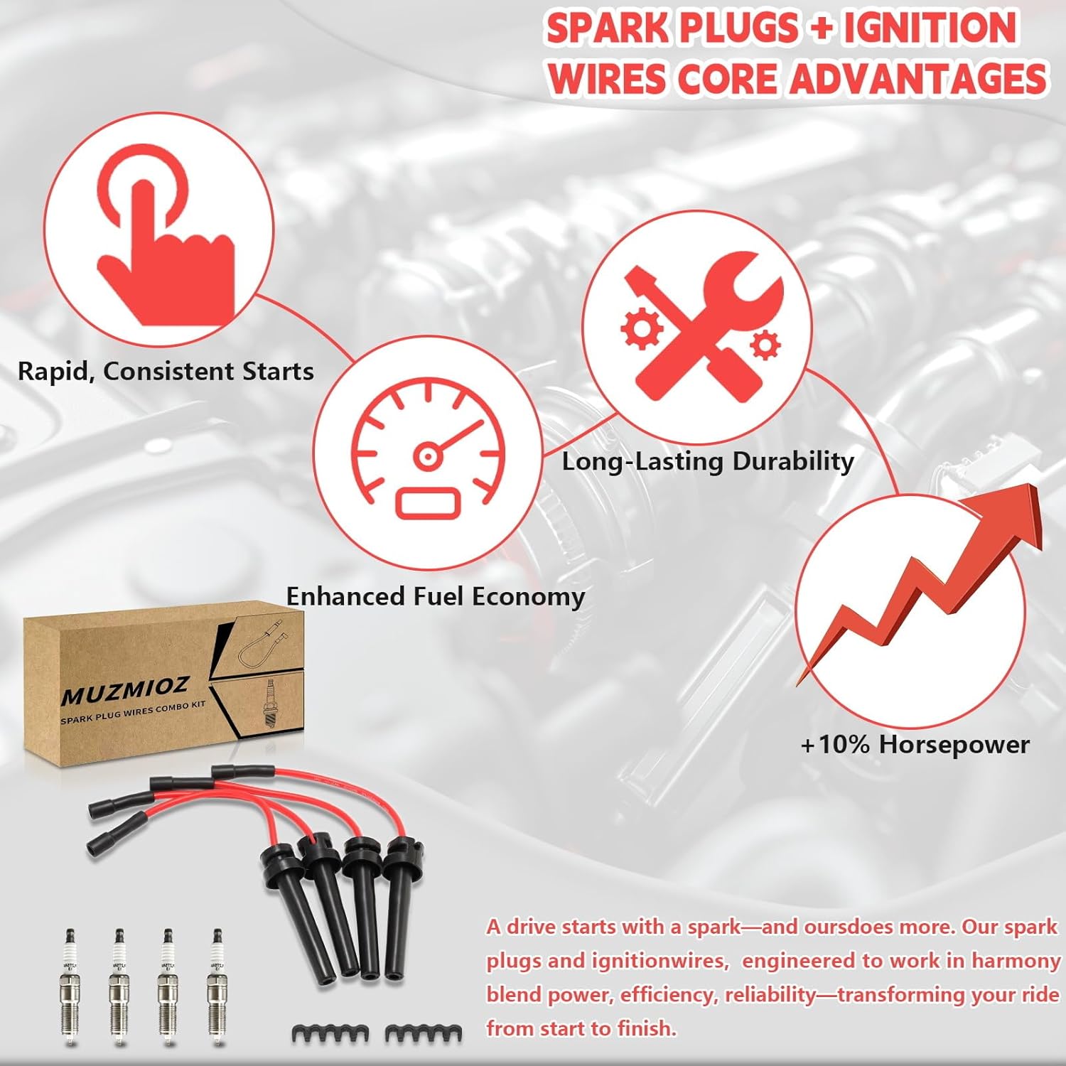 • Performance Features: Our spark plug and wire set is made with high-quality materials, offering low emissions and high energy output. It is designed to function reliably in all conditions, featuring easy installation and high-heat-resistant compounds for long-lasting durability.