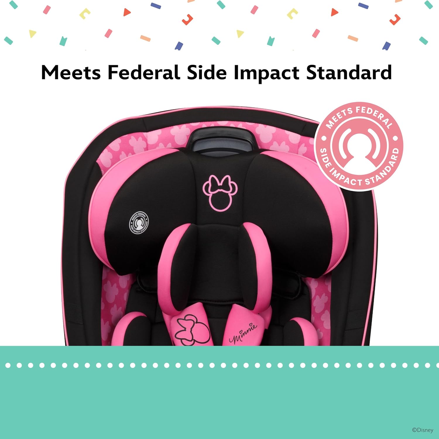 Get the car seat for Disney fans that’s built to grow! From your baby’s first ride home from the hospital to school drop-offs years later, the Disney Baby Grow and Go All-in-One Convertible Car Seat provides a safe and comfortable ride through every stage. This versatile car seat transitions through 3 modes: rear-facing (5–40 lbs., 19"–40"), forward-facing (30–65 lbs., 34.4"–49"), and belt-positioning booster (40–100 lbs., 43.4"–52"). The Grow and Go includes 2 removable grow-with-baby pillows to give newborns a snug fit. The QuickFit Harness system lets you adjust the headrest and harness in one easy step, ensuring the right fit as your child grows. Built-in harness holders make it easier to get your child in and out, while 3 recline positions provide added comfort and a better fit in your vehicle. For easy cleanup, the seat pad is designed with snaps so you can remove it without taking out the harness, then machine wash and dry. Two removable, dishwasher-safe cup holders give kids a spot for drinks and snacks. From infant to toddler to big kid, this all-in-one Disney Baby car seat is built for safety, comfort, and convenience—ready to be part of all your family’s travels. Actual fit may vary. Not all children will fit comfortably within the full weight and height ranges listed.