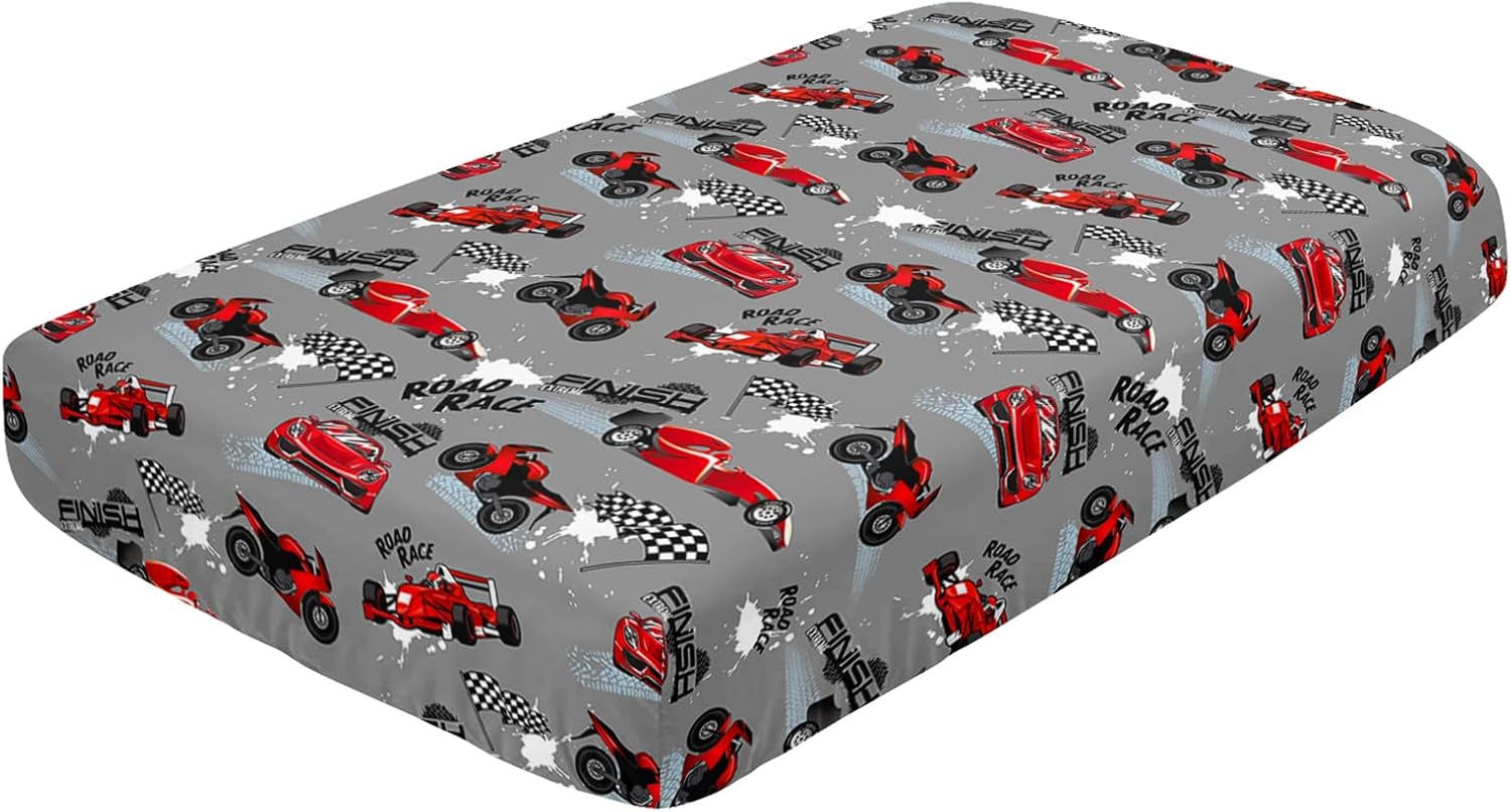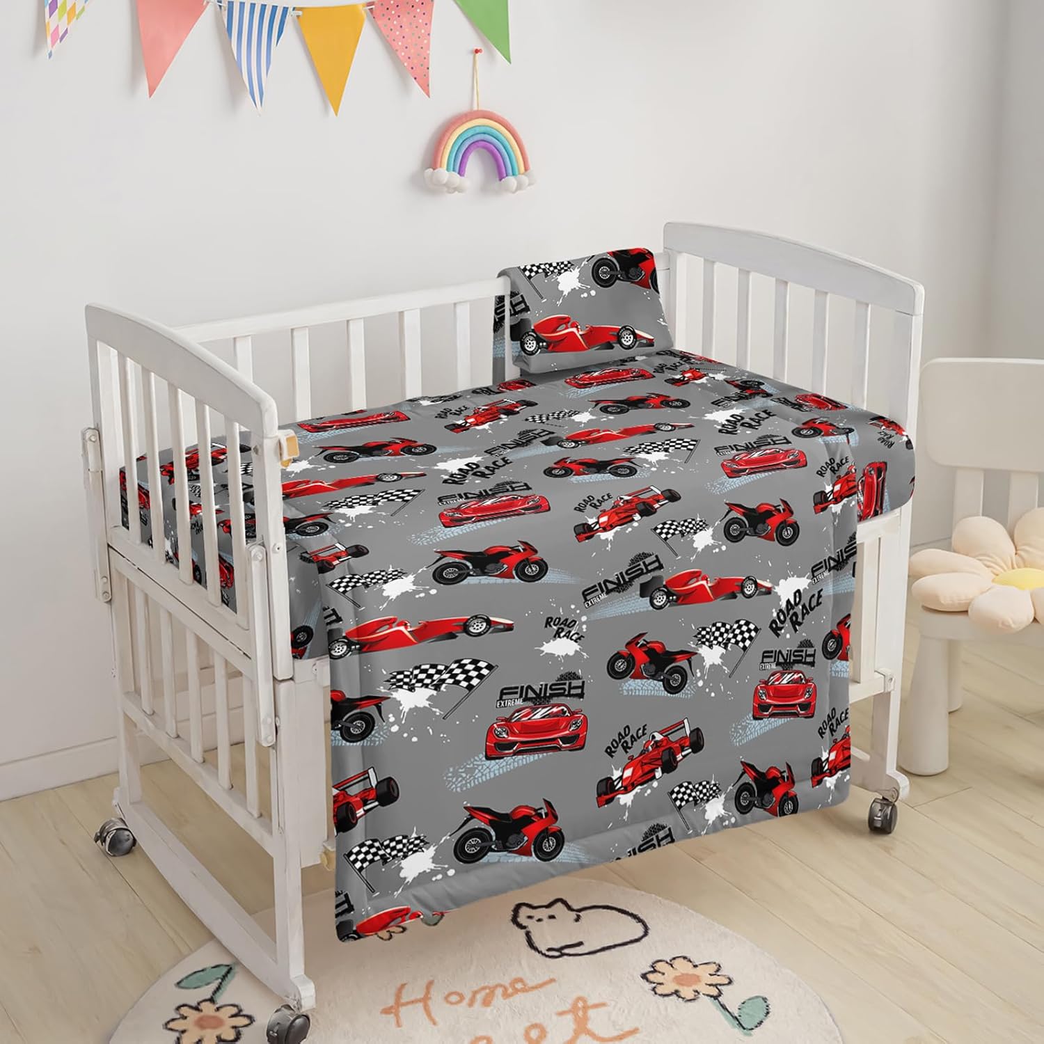 Axolotl Racing Car Bedding Set,3Pcs Bedding Set Soft Comforter Bed Set,Red Car Bed Set Including 1 Quilt Comforter 1 Fitted Sheet 1 Bed Skirt,Bed Set for Boys,Grey