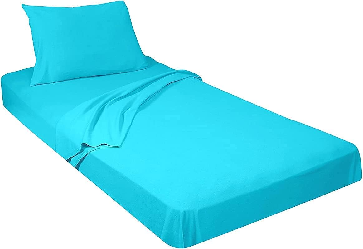 Yarns of Cotton Bed Cot RV Bunk Fitted Sheet - 42" x 80" Aqua Solid - 1 Qty Cot Truck Sleeper Fitted Sheet Only - Cot Size Mattress 4"-8" Deep - Perfect for Narrow Twin/Rv Bunk/Camping Cot