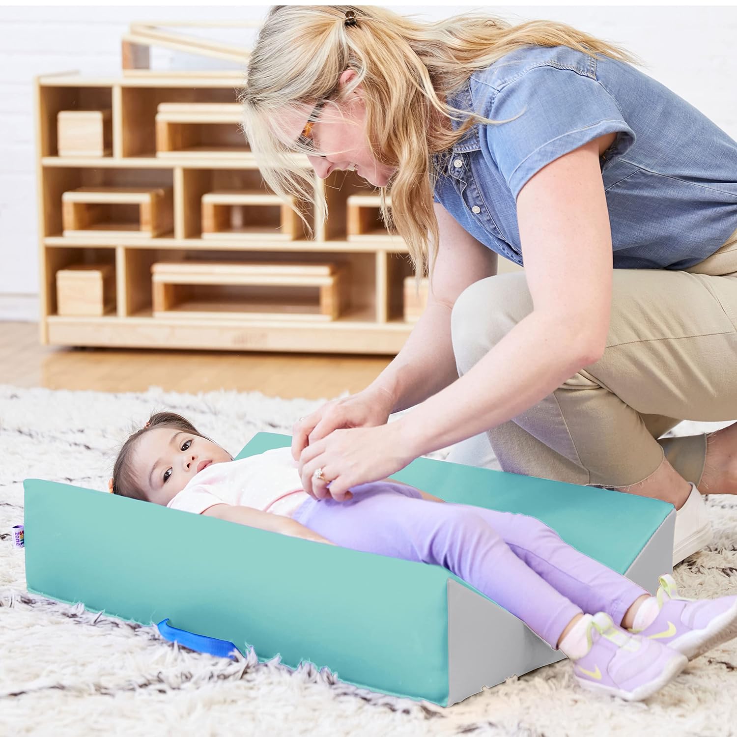 Keep babies safe, comfortable, and clean during changes with SoftZone Baby Changing Pad. This plush foam pad has contoured sides to help keep little ones in place and allows you to face them during clothing and diaper changing pad routines. Designed for everyday use in daycares and preschools, it also makes the perfect baby changing table solution for the home. The changer doubles as a portable changing pad with a sewn-in handle, making it easy to move from room to room or take on the go. Intended for use on any safe, flat surface, it transforms a dresser or counter into a secure changing table space. The one-piece, compact design stores easily when not in use—slide it under a couch, dresser, or bed, or tuck it into a closet. Lightweight and travel-friendly, this changing pad portable option is ideal for taking to grandparents’ houses, using on road trips, or keeping as a backup portable diaper changing pad. The foam core is covered in water-resistant polyurethane vegan leather with a durable woven backing and features a non-slip base for added stability. The space-saving design comes fully assembled and ready to use, allowing more time spent with children.