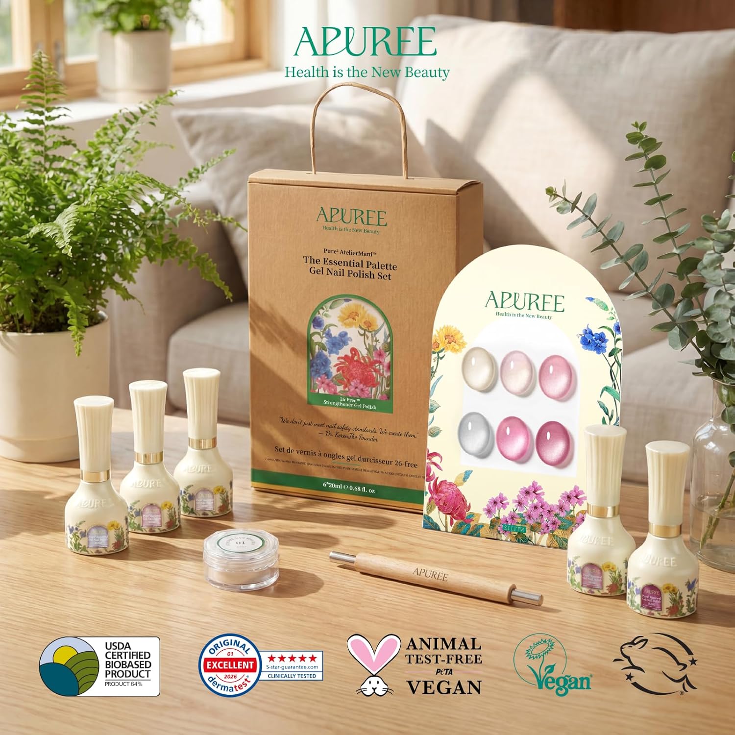 | Product Benefits | APUREE Cat Eye Gel Nail Polish Set: >64% USDA Bio-Based, 26-Free™ large-molecule formula, actively strengthens nails, the perfect system for confident, long-wear color. |