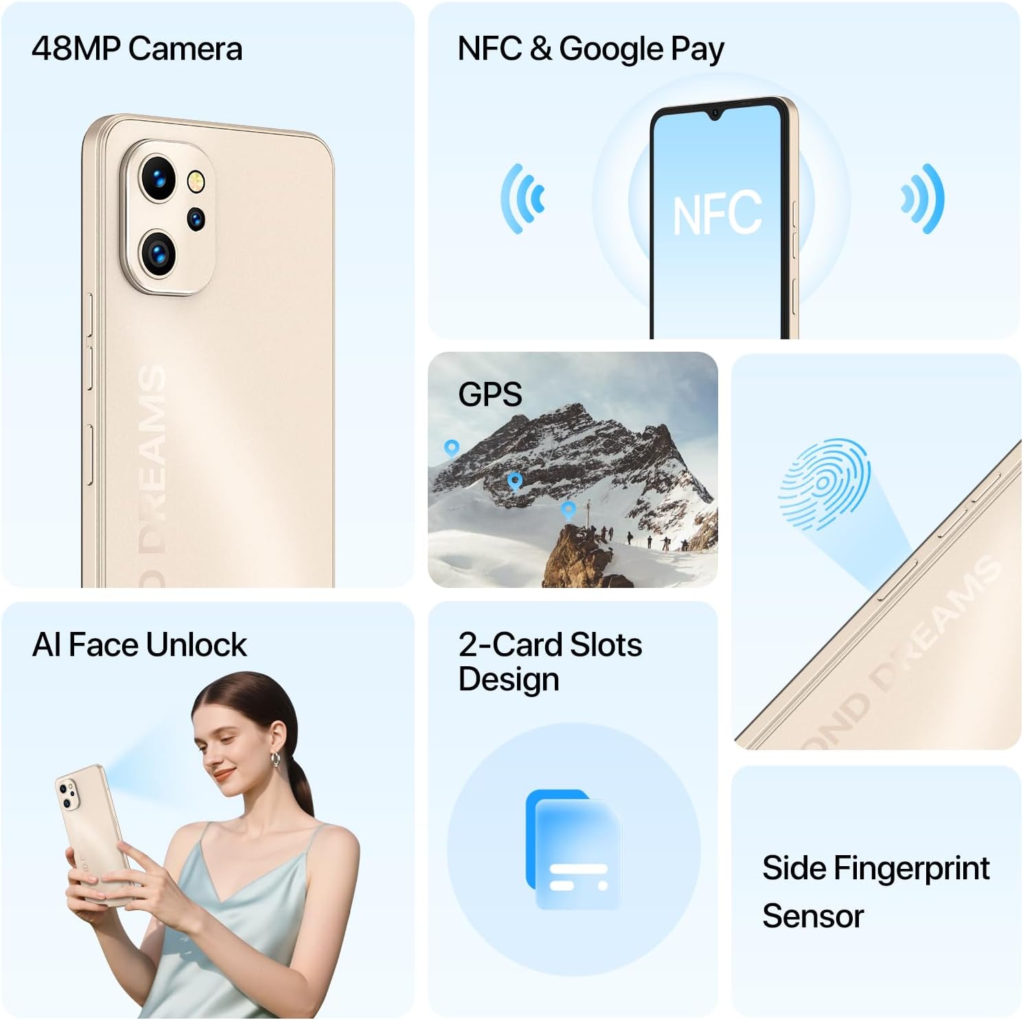 • 【NFC Smart Phones & Powerful Unisoc T610 Processor】A13 Pro Android Cell Phones supports Google Pay, bringing more convenience to your life. The Unisoc T610 Octa-Core processor is composed of two A75 cores and six A55 cores and processed with TSMC 12nm process, ensuring not only the smooth running of daily tasks but also the fast loading of games.