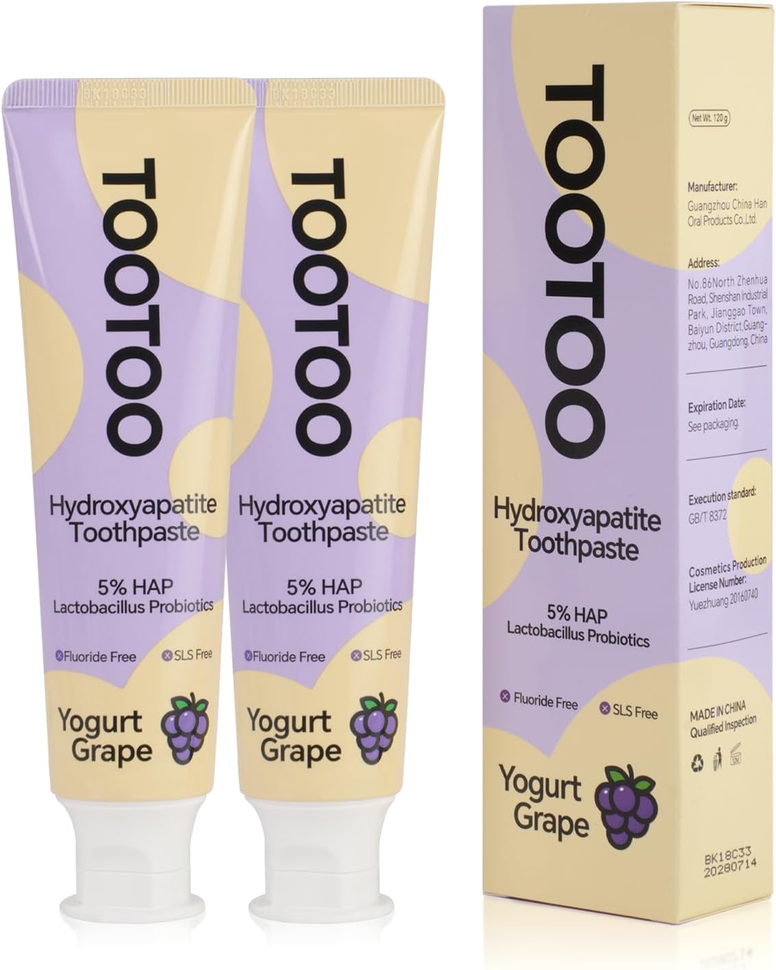 TooToo Fluoride Free Kids Hydroxyapatite Toothpaste - Probiotics & Xylitol Toothpaste - All Natural - Yogurt Grape Favor, 16.8 OZ