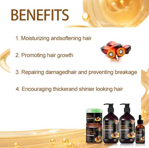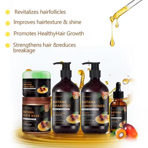 Miracle of Batana Oil Unlock the secret to thicker, stronger, and more radiant hair with the CAIQAIBAI 5-Piece Batana Oil Hair Care System. Sourced from the essence of the Batana nut, this complete regimen is designed to transform dry, thinning, and damaged hair into a healthy, voluminous mane. Our formula penetrates deep into the roots to provide the nutrients your scalp craves.