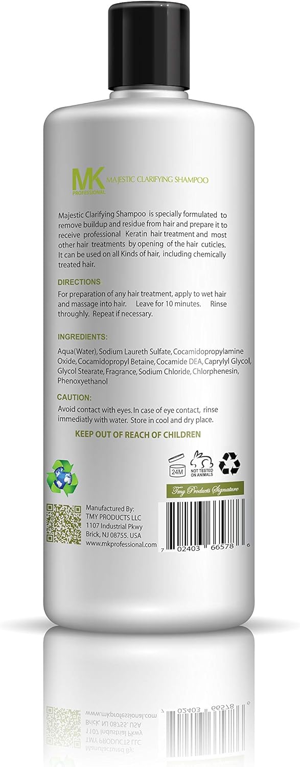 Majestic clarifying shampoo is specially formulated to remove buildup and residues from hair and prepare it to receive professional Brazilian keratin treatment and most other hair treatments. It can be used on all kinds of hair, including chemically treated hair.