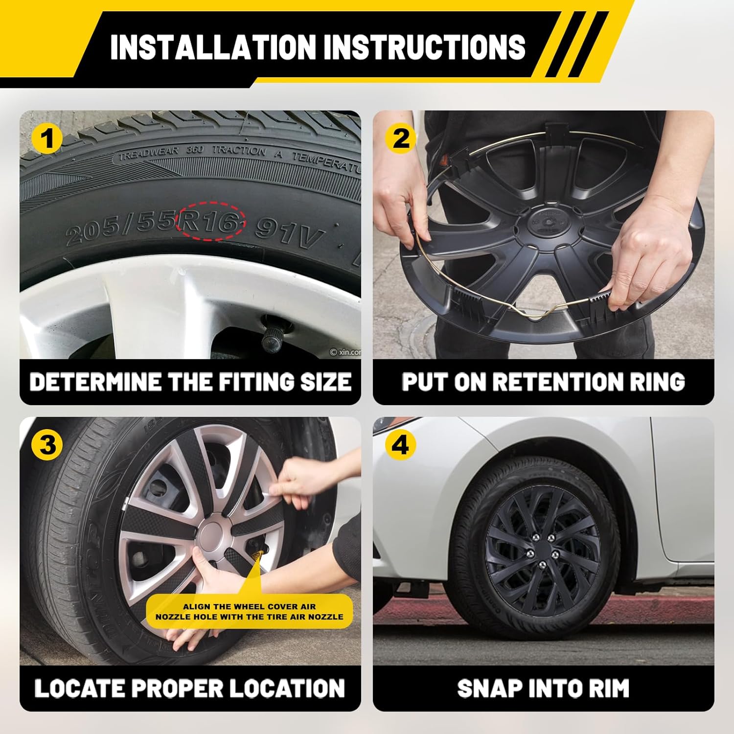• [Easy to Install] - Pack of 4, quickly and easily snap right onto your vehicles front & rear wheel. You can refer to the installation steps in the picture.