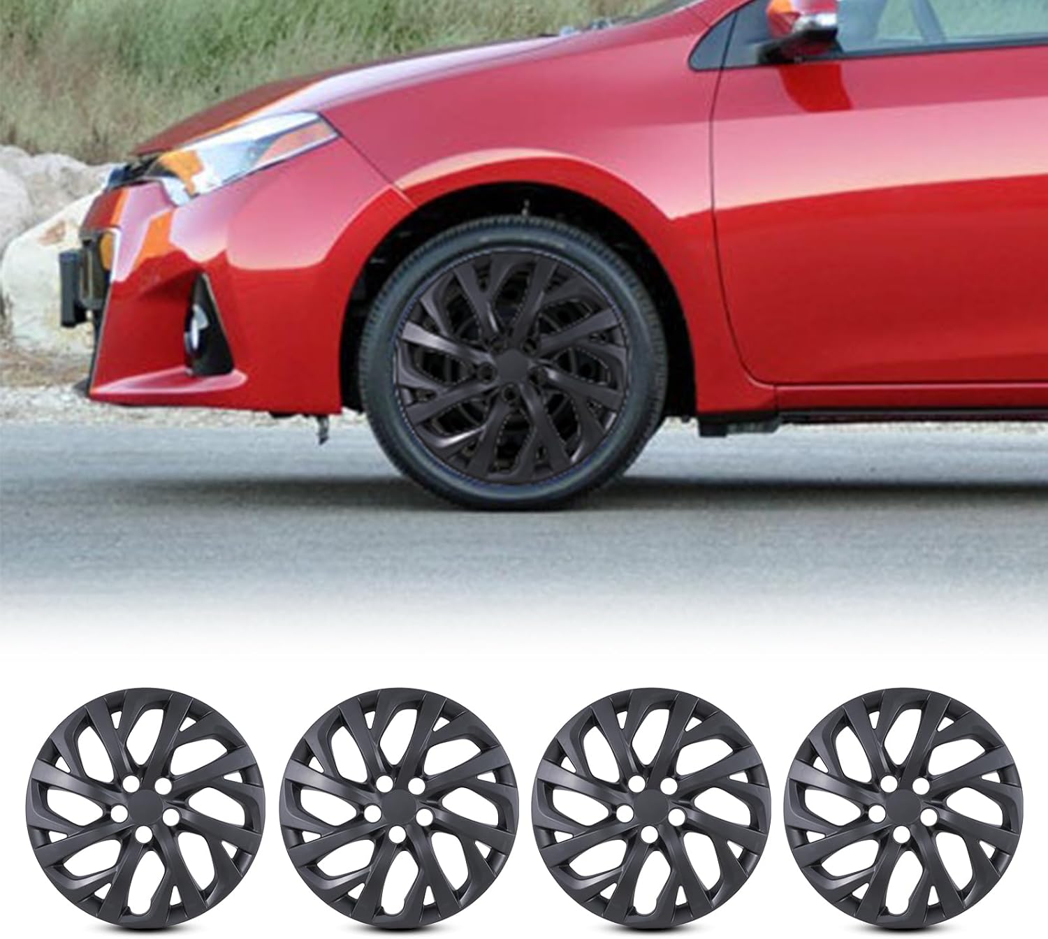 16" Hubcaps Wheel Rim Cover Compatible for 2009-2014 Toyota Matrix, 2009-2024 Toyota Corolla Steel Wheels, Snap On Install with Decorative Bolts (16-Inch, ABS Black Matte Color) 42602-02520