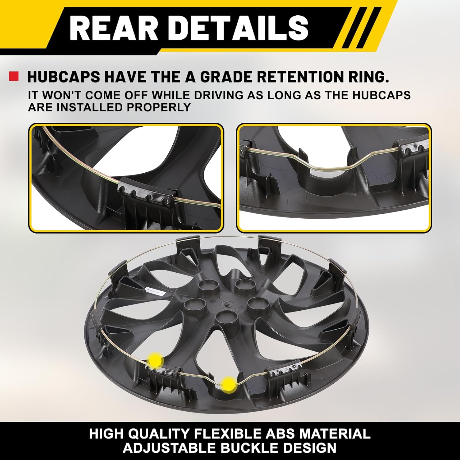 • [Special Design] - Hub caps have the A grade retention ring, designed to stay in place no matter the weather or road conditions. And have adjustable buckle design to provide a secure & tight fit.