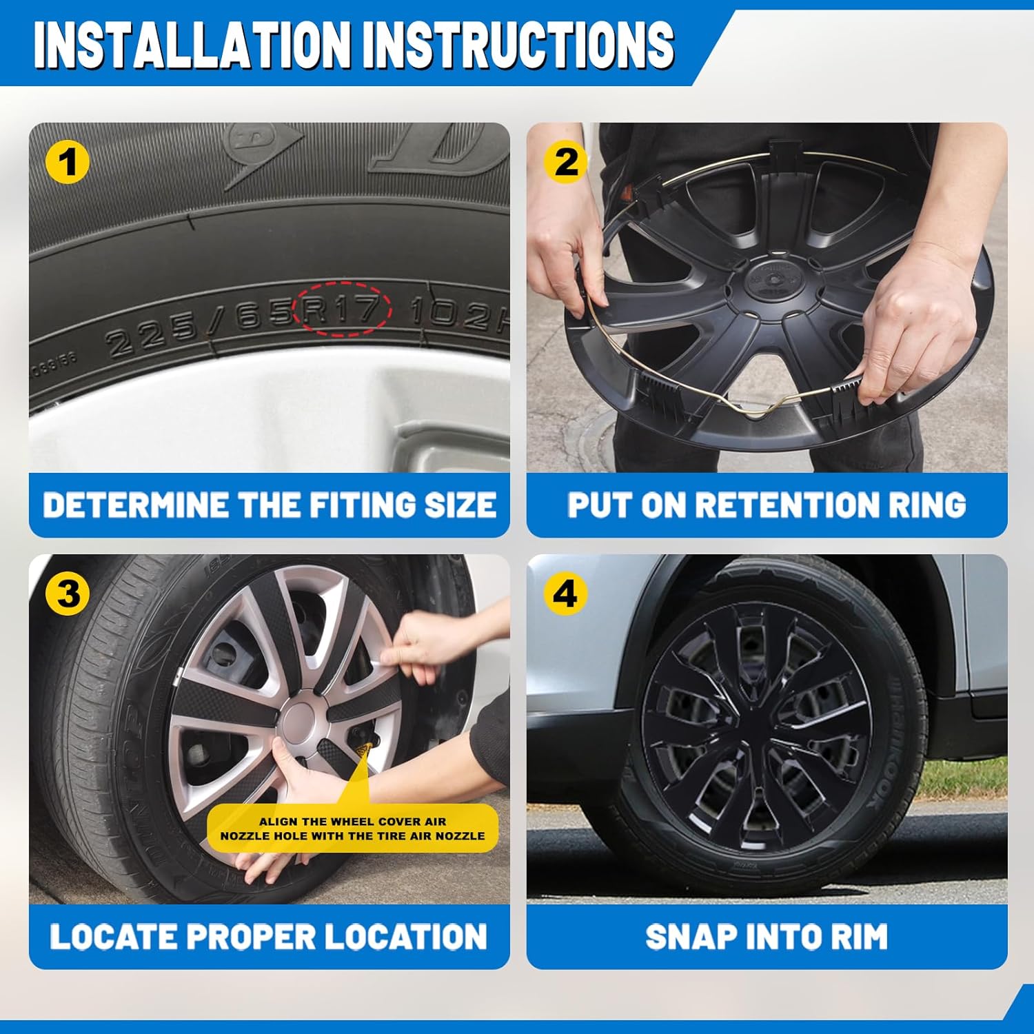 🚘Fitment Fit for 2014 Nissan Rogue Fit for 2015 Nissan Rogue Fit for 2016 Nissan Rogue Fit for 2017 Nissan Rogue Fit for 2018 Nissan Rogue Fit for 2019 Nissan Rogue Fit for 2020 Nissan Rogue * NOTE: Not fit for Rogue Sprort 16" steel wheel ❗Feature Made of High Quality OEM Grade ABS+PC Plastic Snap on style installation, no modification is needed. 💎Specification Compatible Wheel Size: 17 inch Wheels (R17) Material: ABS+PC Material Color: Black Lacquer Installation Type: Snap-on 🎁Package Included 4x AUTOWIKI 17” Wheel Tire Covers * Please make sure this is the right size/product for your vehicles before purchasing it. Measure by checking the number after the "R" on your tires. 🔵ABOUT STORE AUTOSTORM is a brand that has been in the auto parts field for 20 years, with exclusive manufacturing process, quality assurance system to provide customers with the best online shopping experience to provide customers with the best quality auto parts.