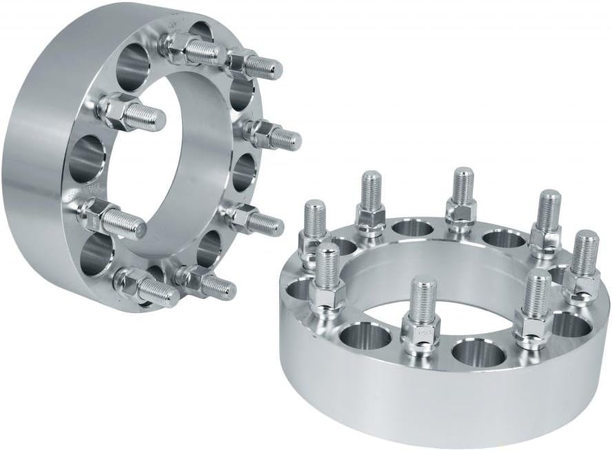 2 Pc 8 Lug Heavy Duty Wheel Spacers Adapters. The bolt pattern is 8x170mm, 2" Thick , With 14x2.0 Stud Thread Pitch. These Spacers Adapters Are Made From Forged 6061 T6 Air-Craft Aluminum With A Gloss Finish. The Studs Grade are 10.9. Also Included Are 16 Opened End Lug Nuts. Spacers Adapters Are Commonly Used To Eliminate Wheel Tire Rub Instantly, Clear Wheel Issues Hitting Shocks Or Brake Calipers, Mount Larger Tires, Increase Driving Stability, and or Give It An Aggressive Stance. These 8 Lug Wheel spacers adapters Are Built To Last. These spacers adapters are strong enough to withstand off-roading, towing and daily use. You can use these with 2x4 and 4x4 trucks. Very simple to install. Comes with necessary hardware. Spacers/Adapters will fit F-250 (1999-2002), F-350 (1999-2002), F-350 Dually (1999-2002) VERY IMPORTANT: 2003-2004 F-250 F-350 OWNERS PLEASE CHECK THE STUD THREAD PITCH. IT MUST BE 14x2.0. IF YOU HAVE A 14x1.5 THREAD PITCH PLEASE CONTACT US SO WE CAN DIRECT YOU TO THE CORRECT LISTING. OUR NUMBER IS 310 763 0028. THANK YOU